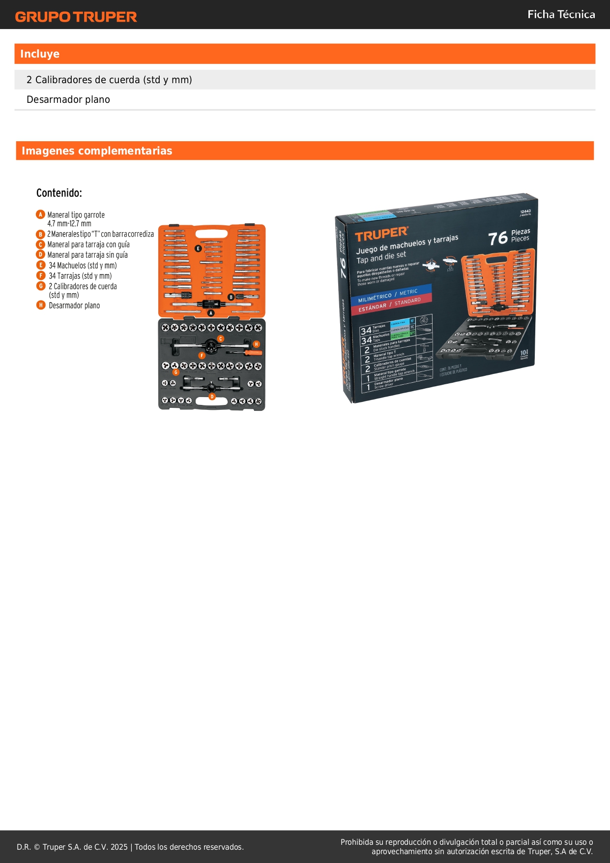 Juego de 76 piezas de machuelos y tarrajas, Truper