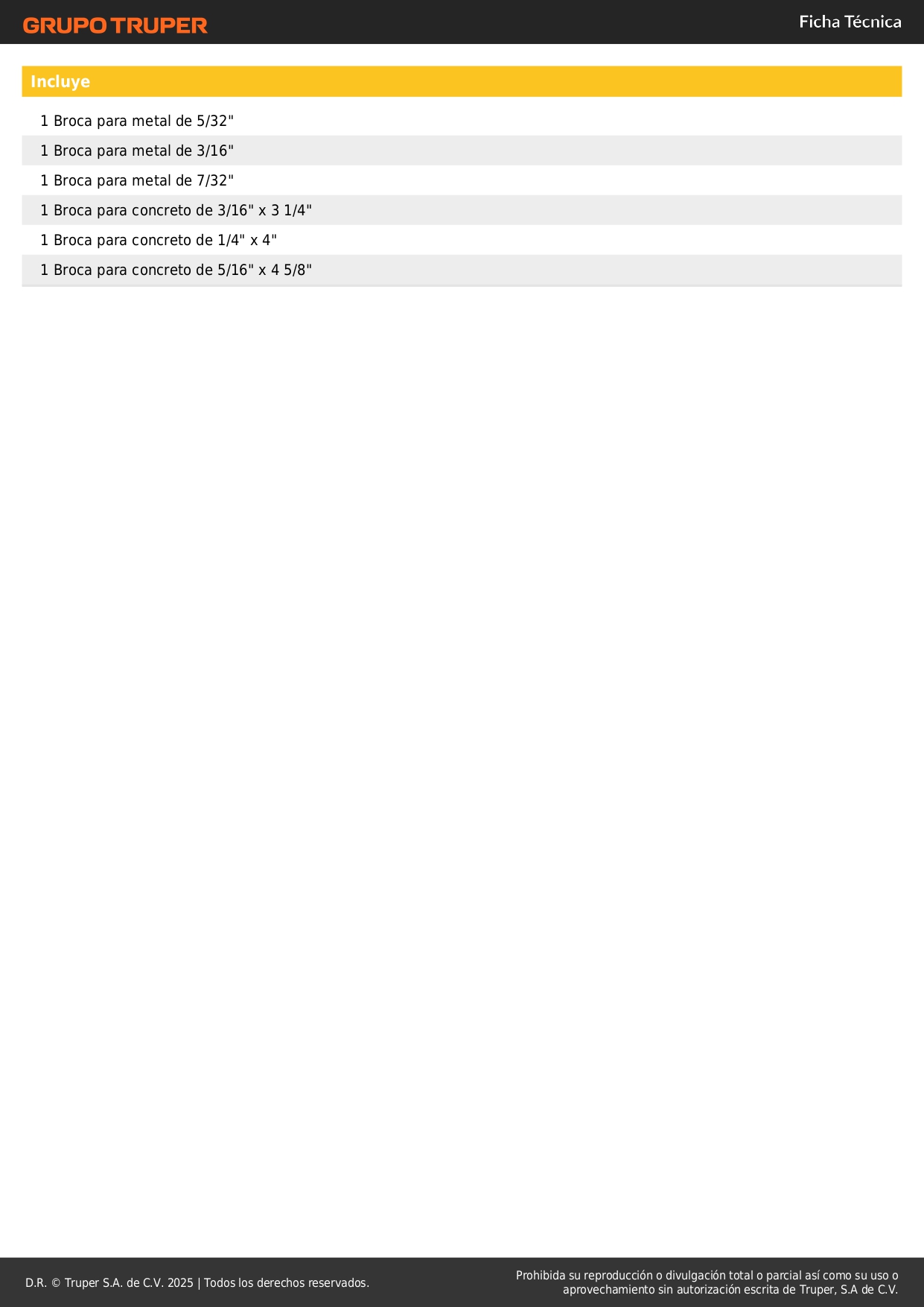 - 1 Broca para concreto de 3/16" x 3 1/4".
