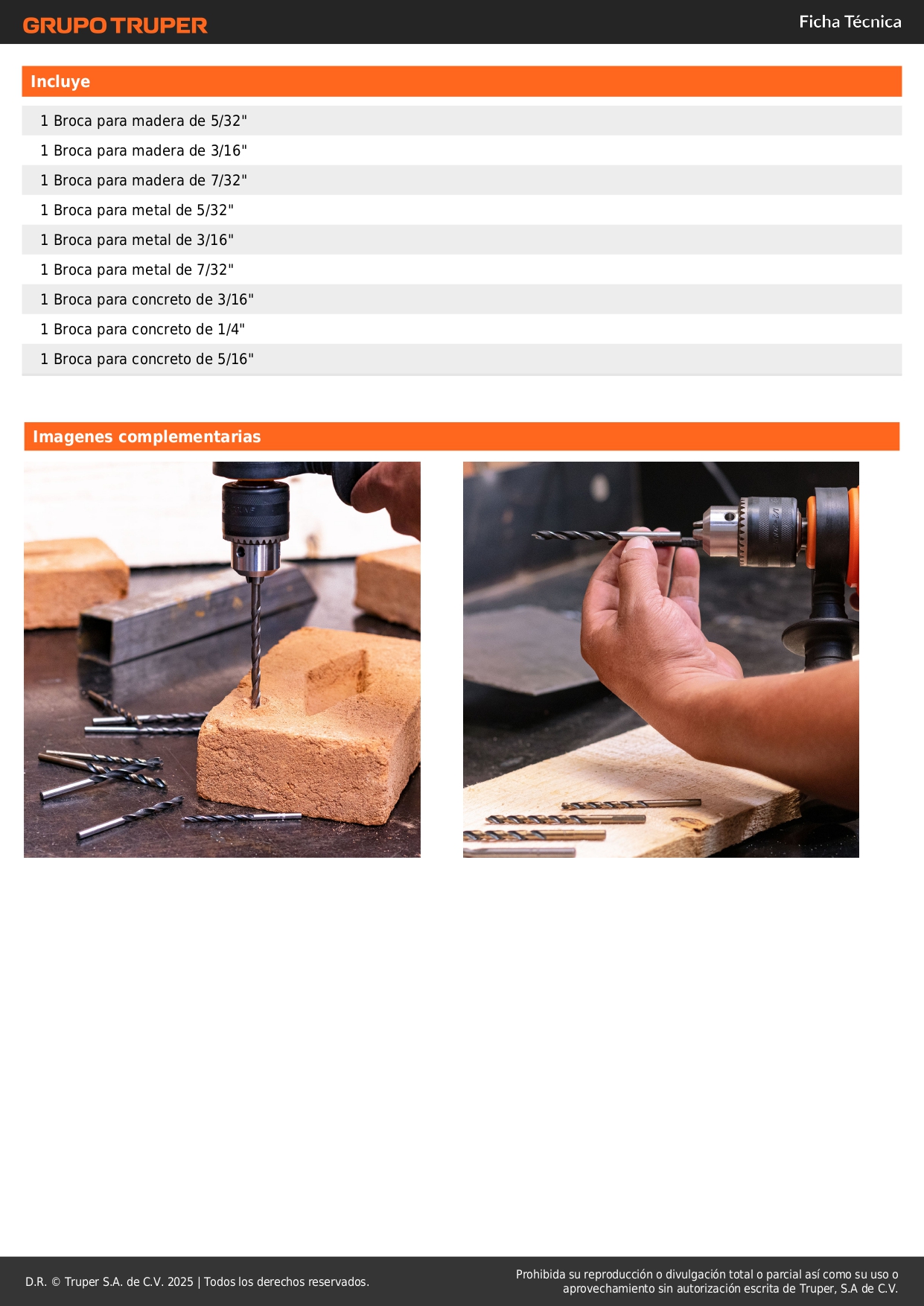 - Medidas marcadas en cada broca para fácil identificación.