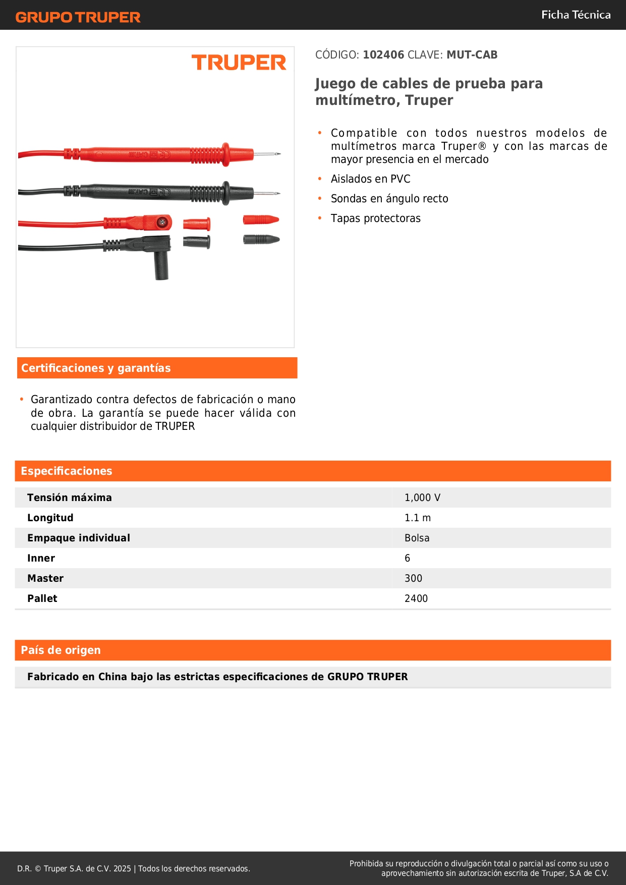 -Compatible con todos nuestros modelos de multímetros marca Truper® y con las marcas de mayor presencia en el mercado