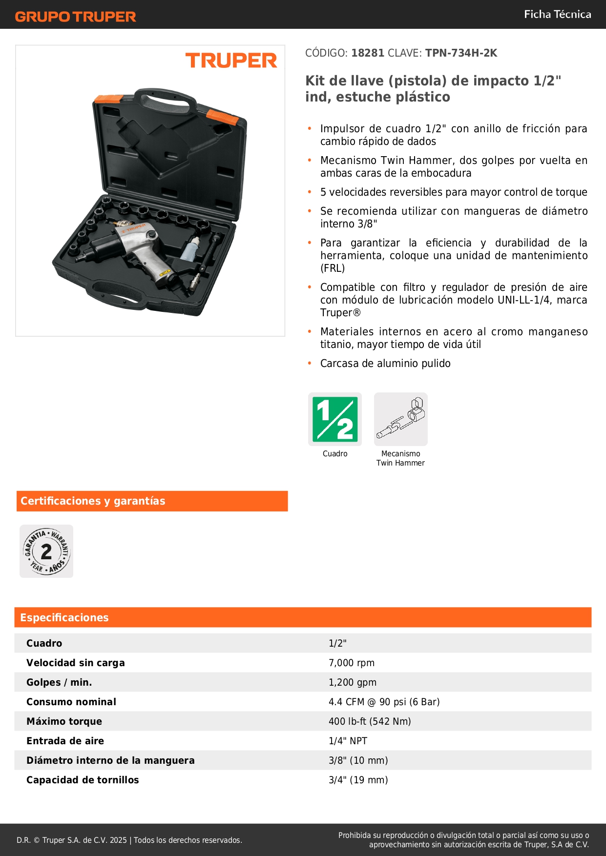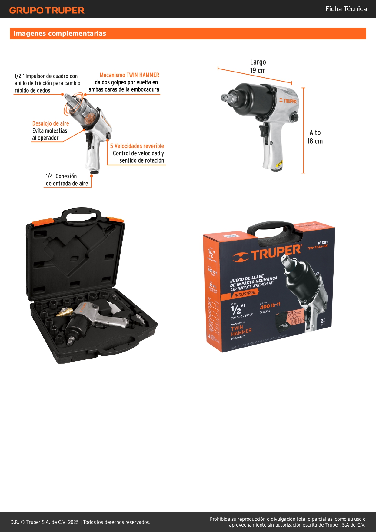 Kit de llave de impacto 1/2" ind. con estuche plástico Truper