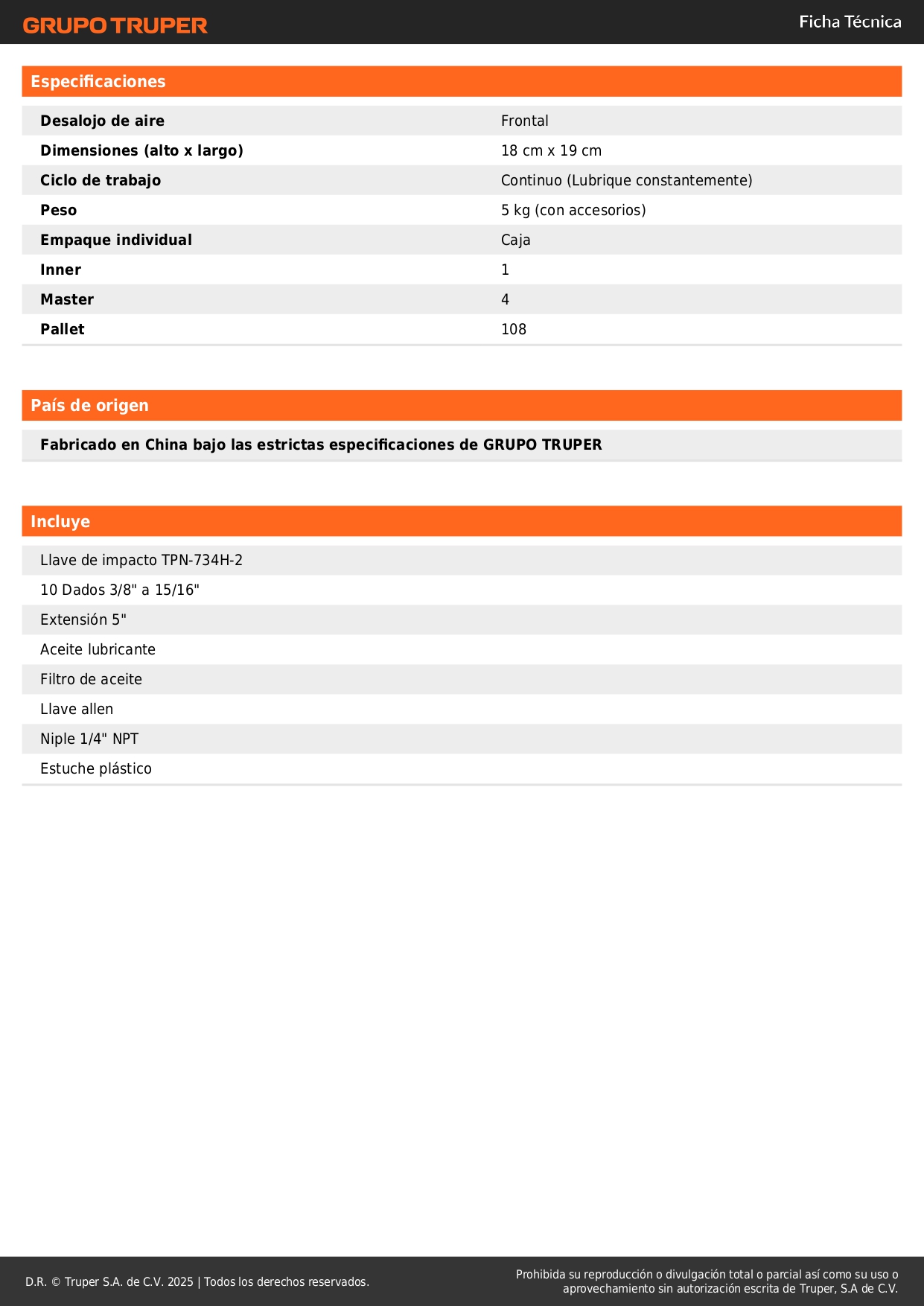 Capacidad de tornillos3/4" (19 mm)
