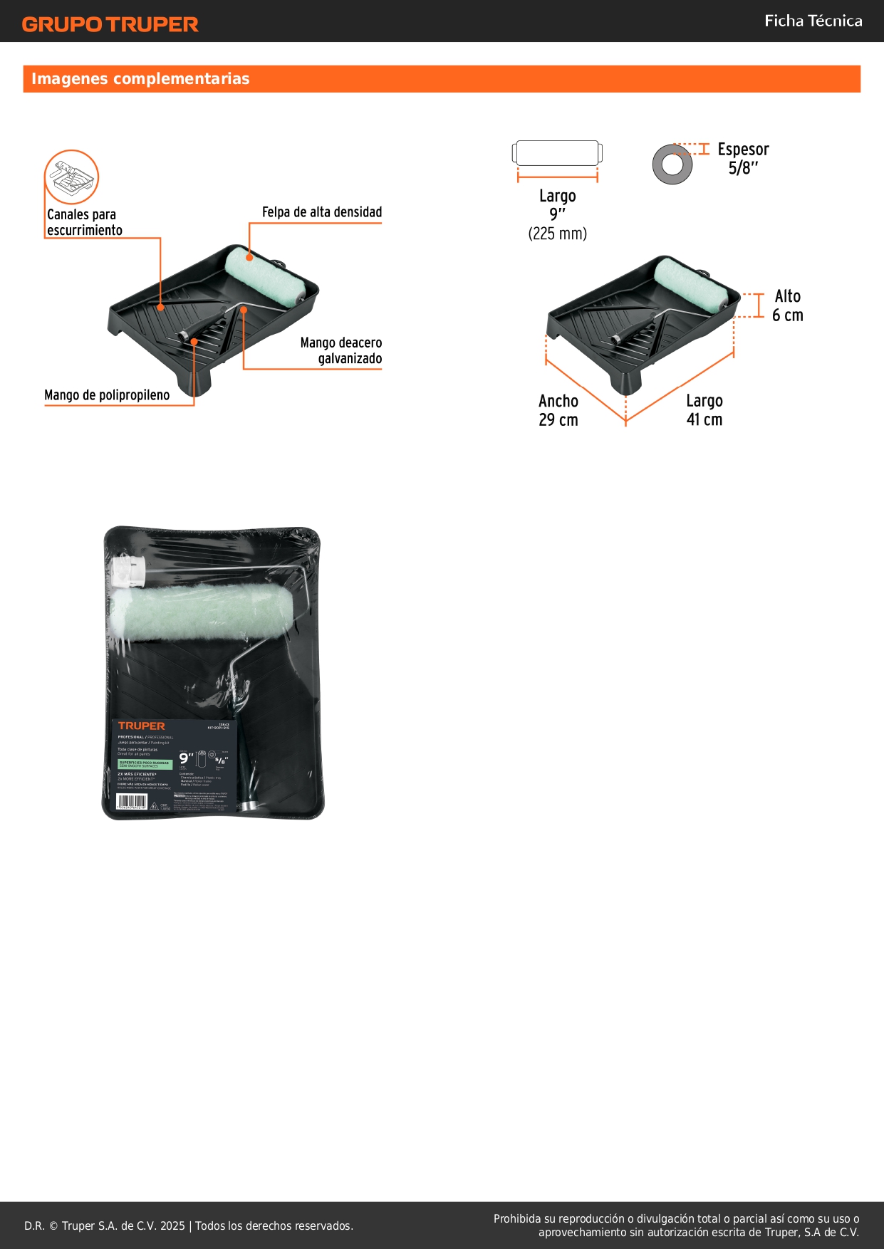 - Rodillo profesional ROPI-915 de 9" 2X más eficiente cubre áreas de mayor tamaño en menos tiempo, uso general para todo tipo de pinturas y superficies rugosas.