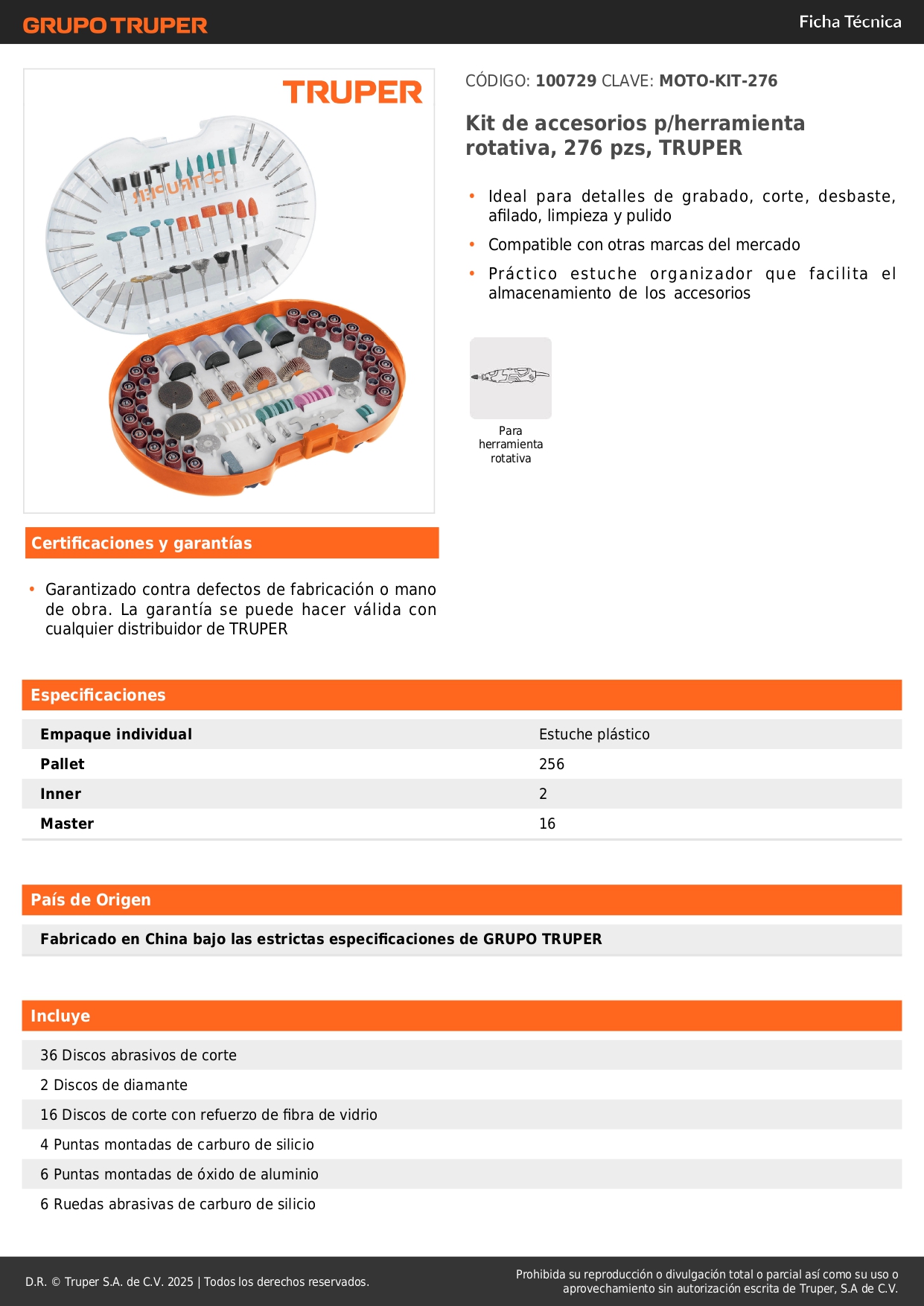 Kit con 276 accesorios para herramienta rotativa, Truper: