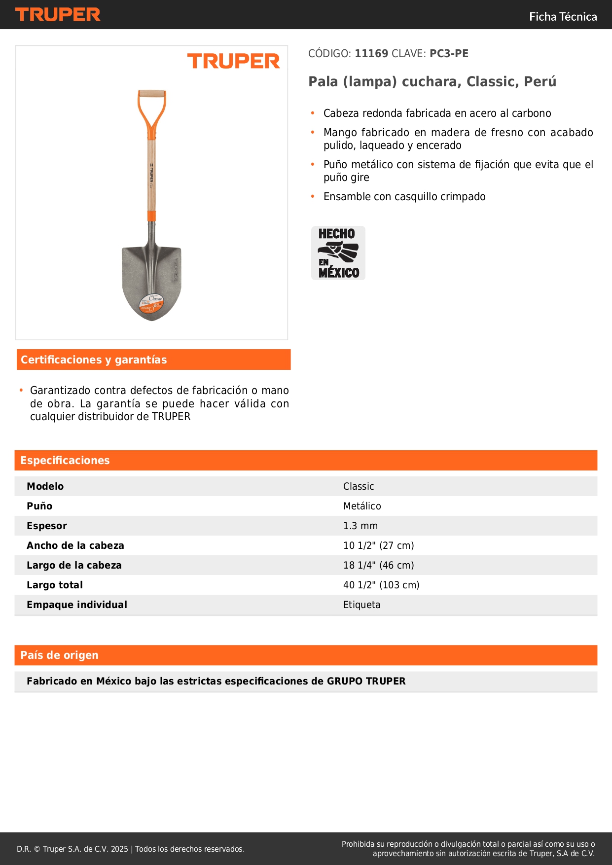 Lampa cuchara Classic, puño ´´Y´´, Truper