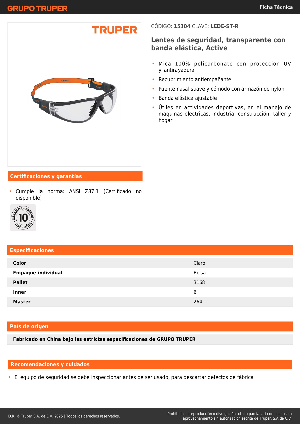 Lentes de seguridad transparente con banda elástica active Truper