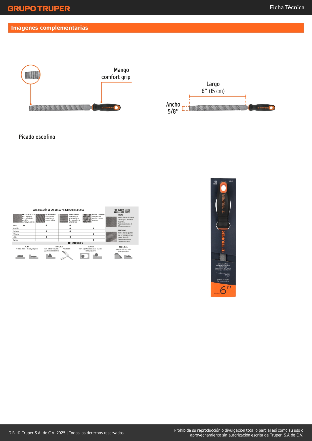 -La lima bastarda tiene dientes grandes que sirven para dar un mayor desbaste. Para uso en más de 0.5 mm de espesor