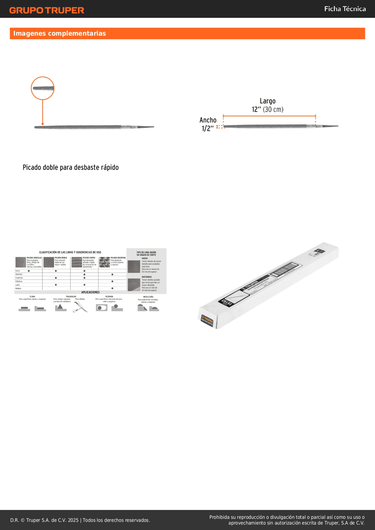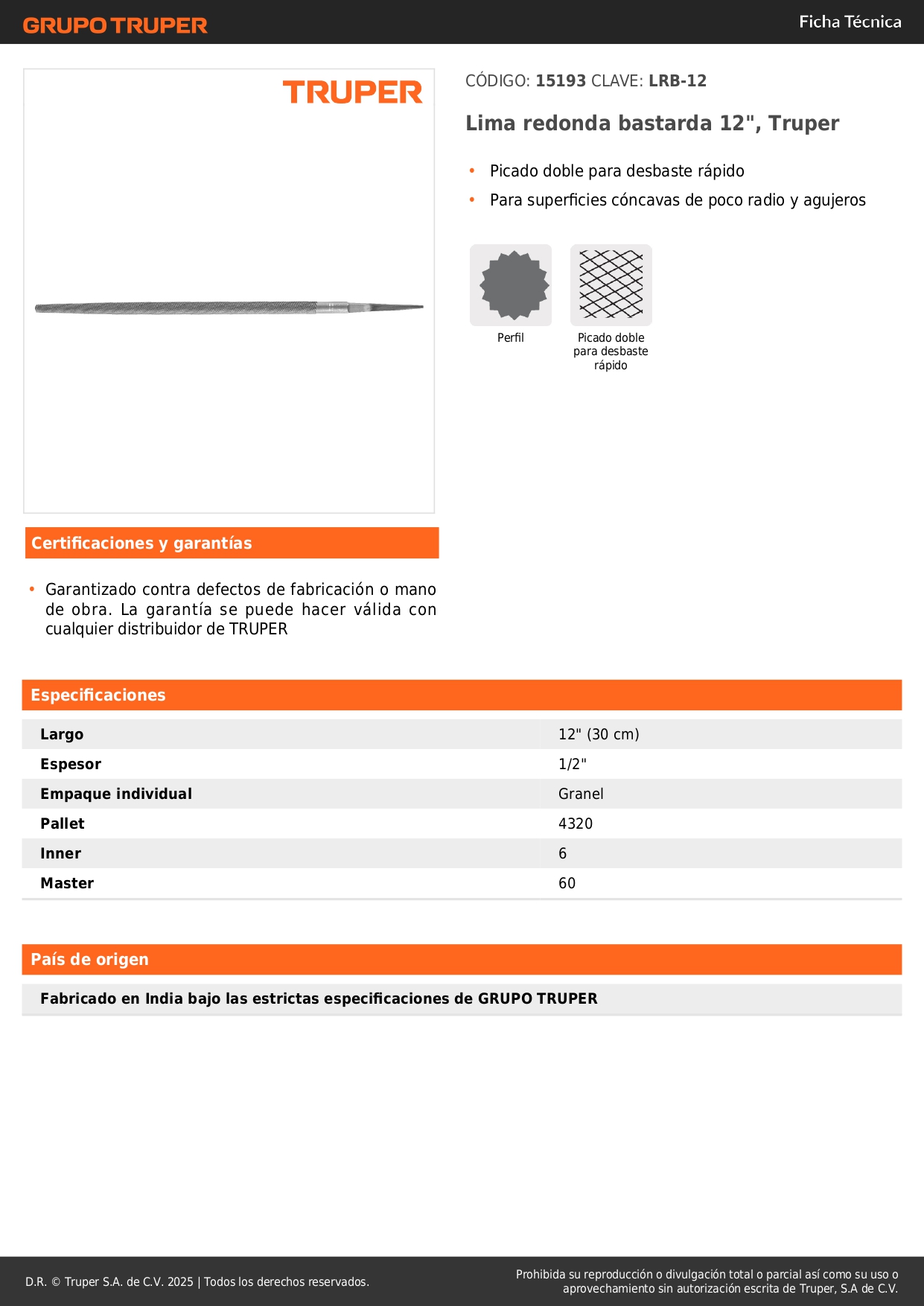 Lima redonda bastarda 12''. truper Stock por sucursal Stock por sucursal S/ 14.00 cantidad Agregar al carro Avísame cuando llegue -Picado doble para desbaste rápido-Para superficies cóncavas de poco radio y agujeros