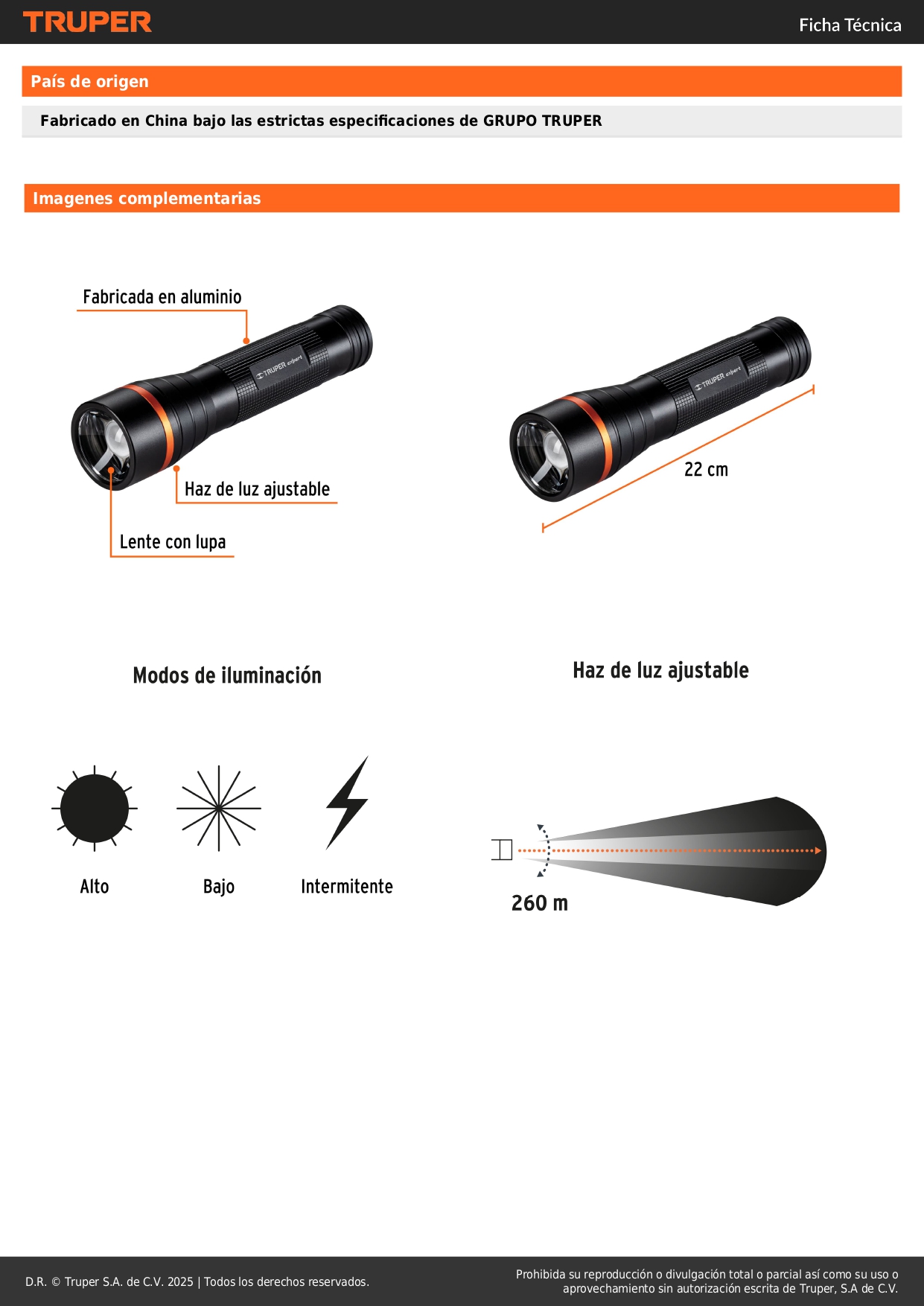 - Modos de iluminación: Alto, bajo e intermitente.