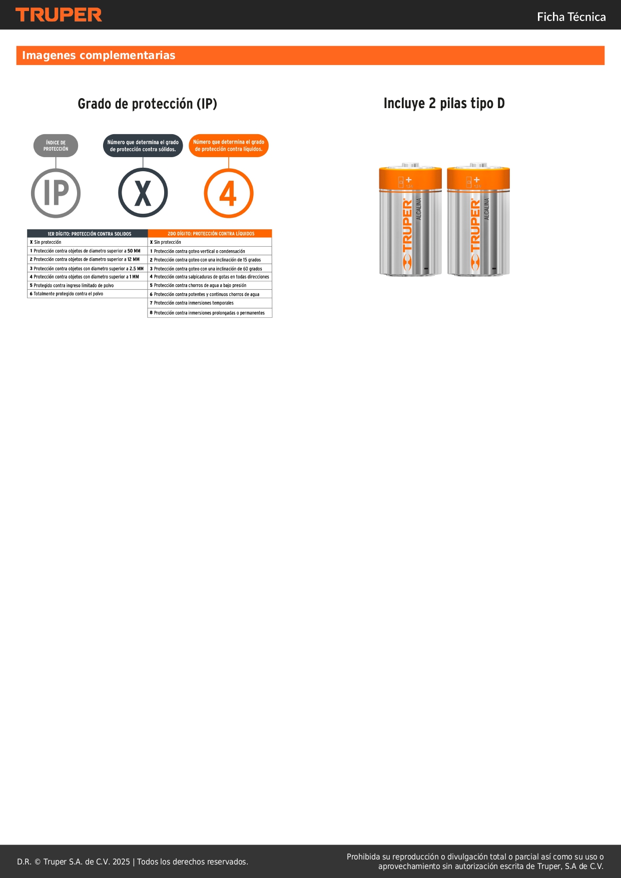 - Pilas alcalinas tipo D incluidas, duran hasta 4 veces más que las de zinc-carbón.
