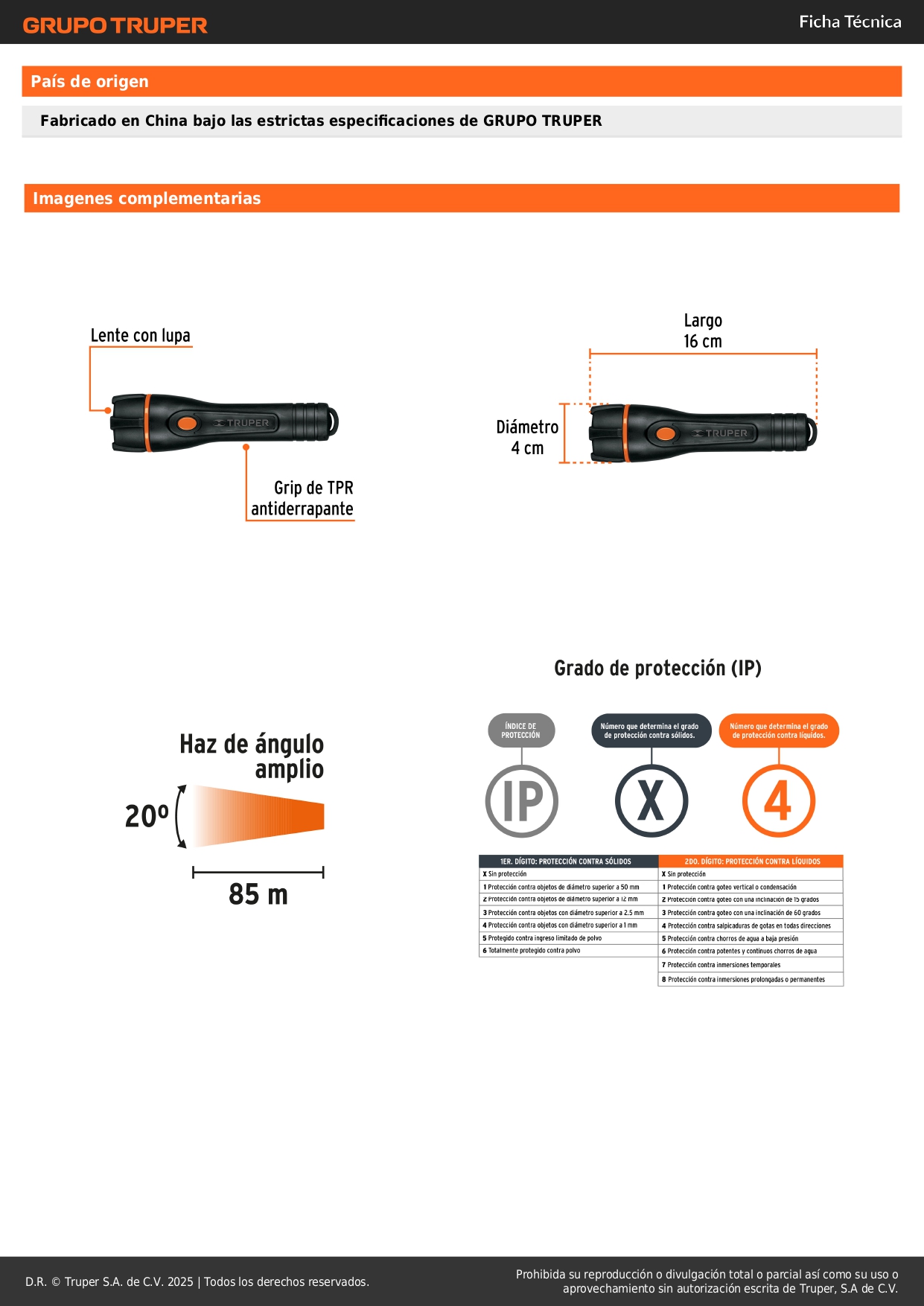 • Distancia del haz de luz 85 m