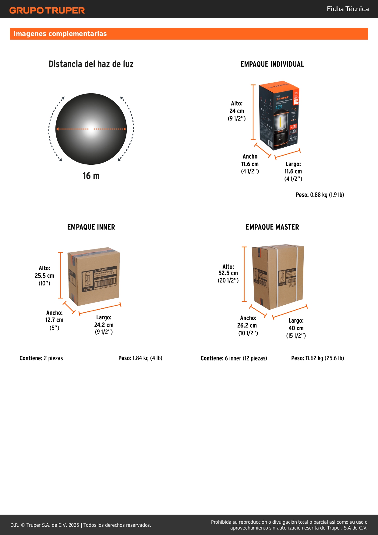 • Distancia del haz de luz: 16 m