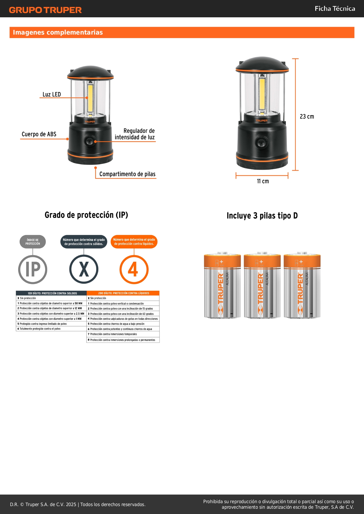• 3 Pilas tipo D, duran hasta 3 veces más que las de zinc-carbón