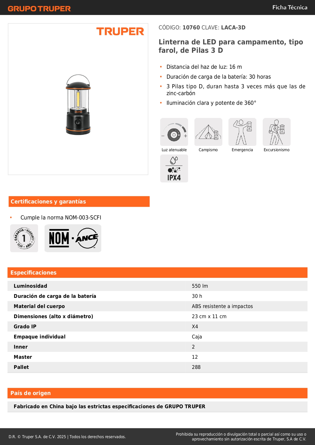 linterna farol led para campamento 550lm Truper
