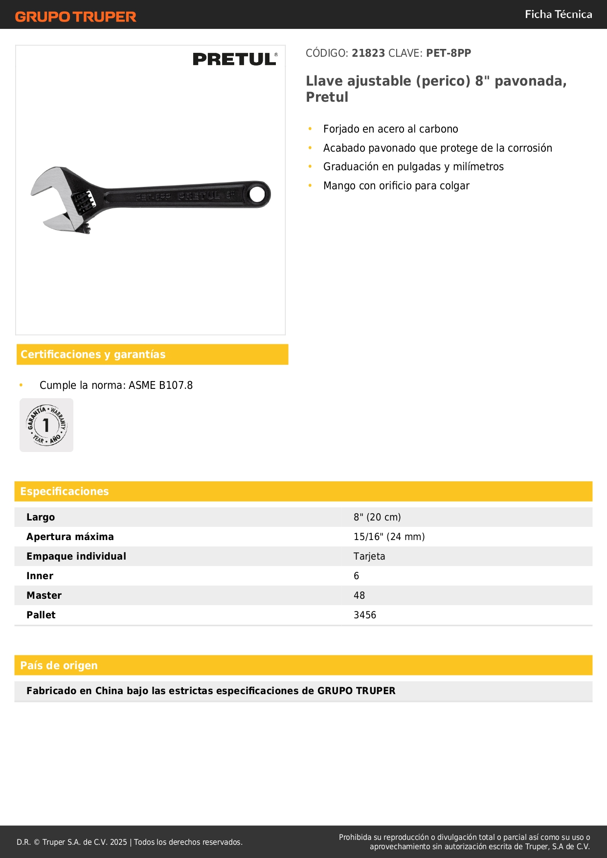 Llave francesa 8´´ fosfatada, Pretul