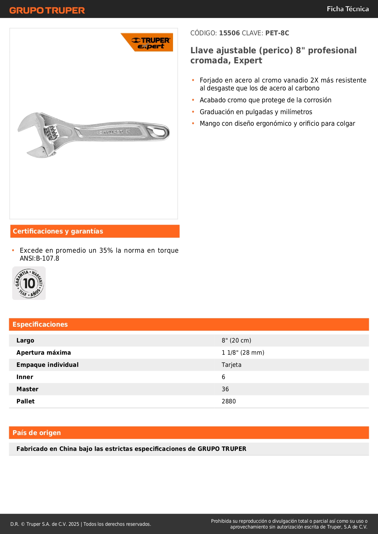 -Forjado en acero al cromo vanadio 2X más resistente al desgaste que los de acero al carbono