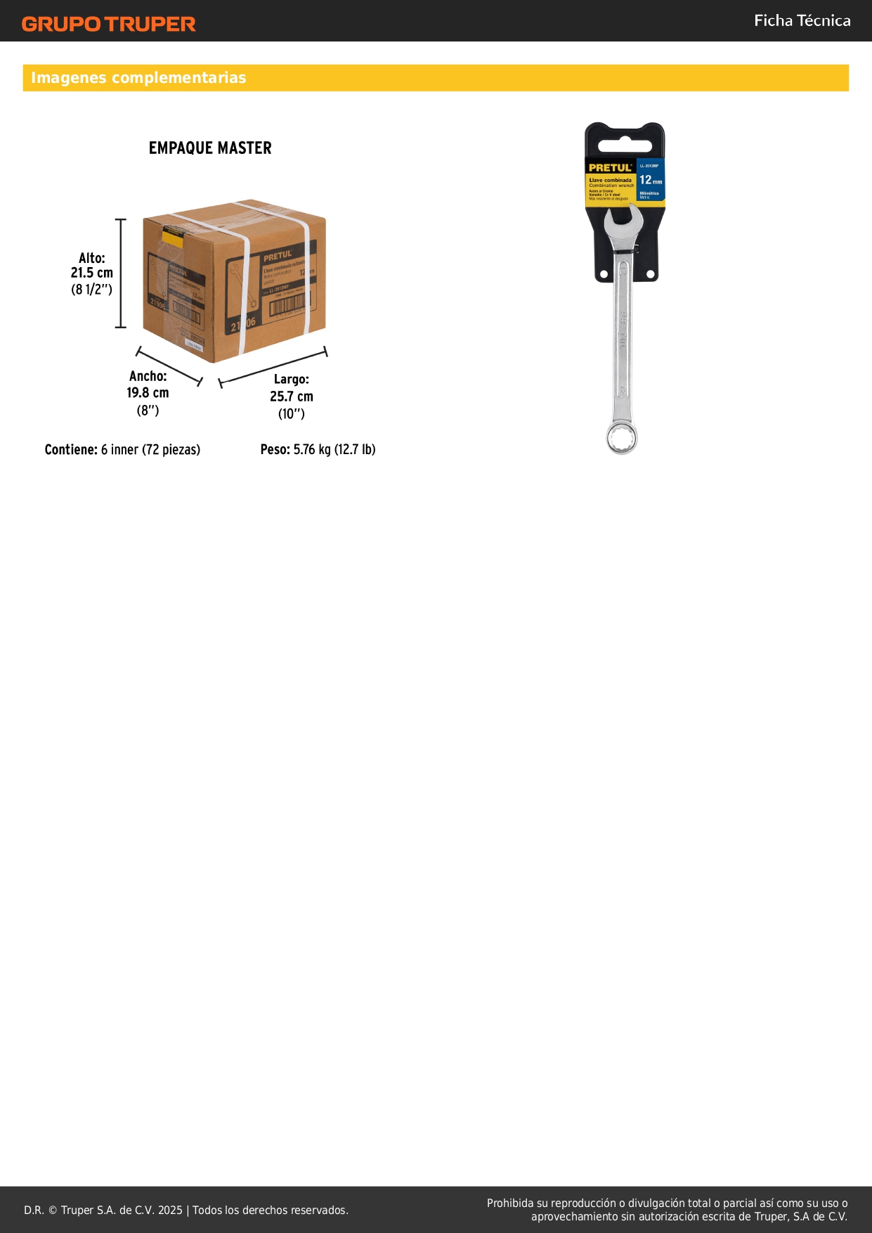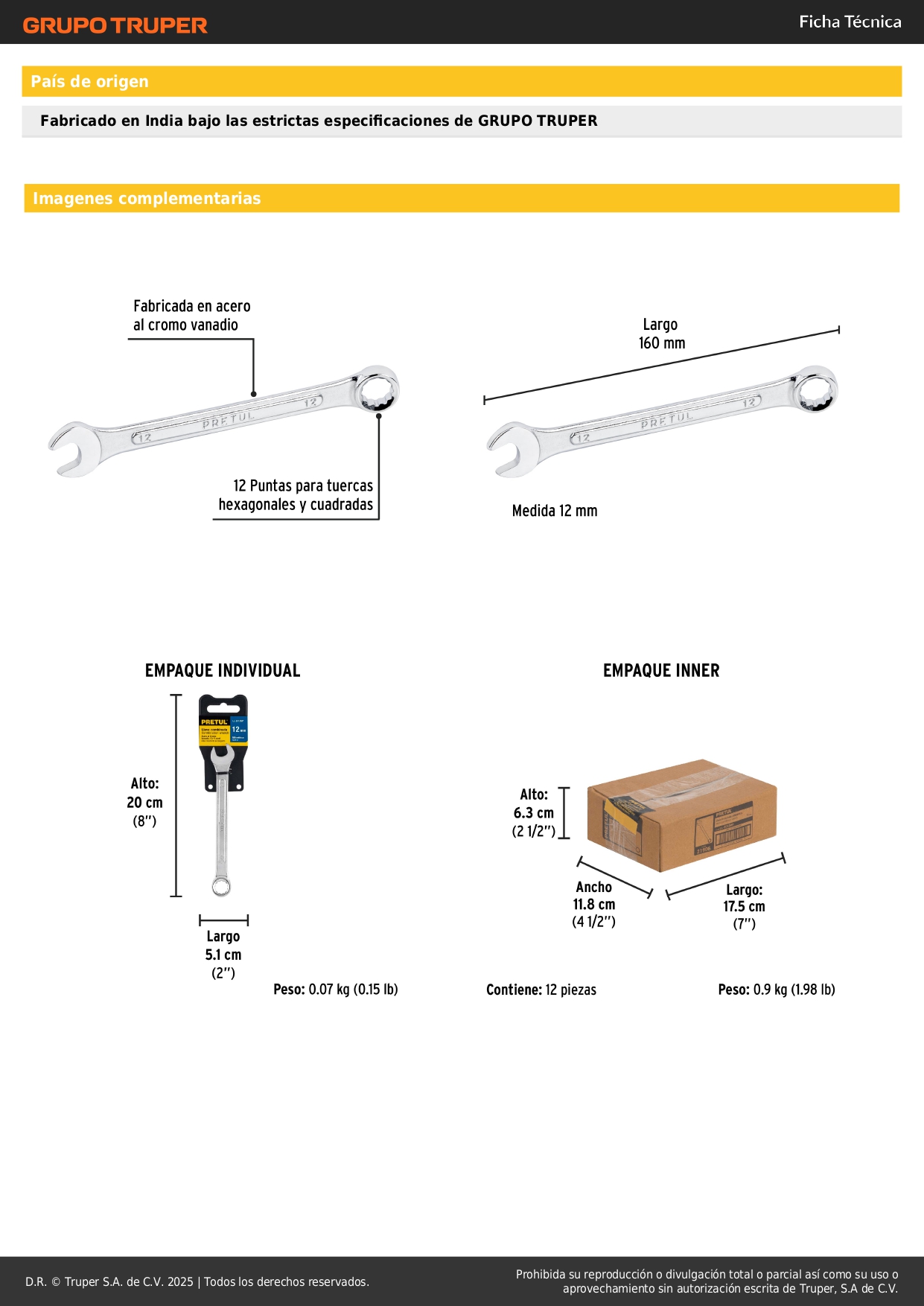 Llave mixta 12 mm x 160 mm de largo. pretul