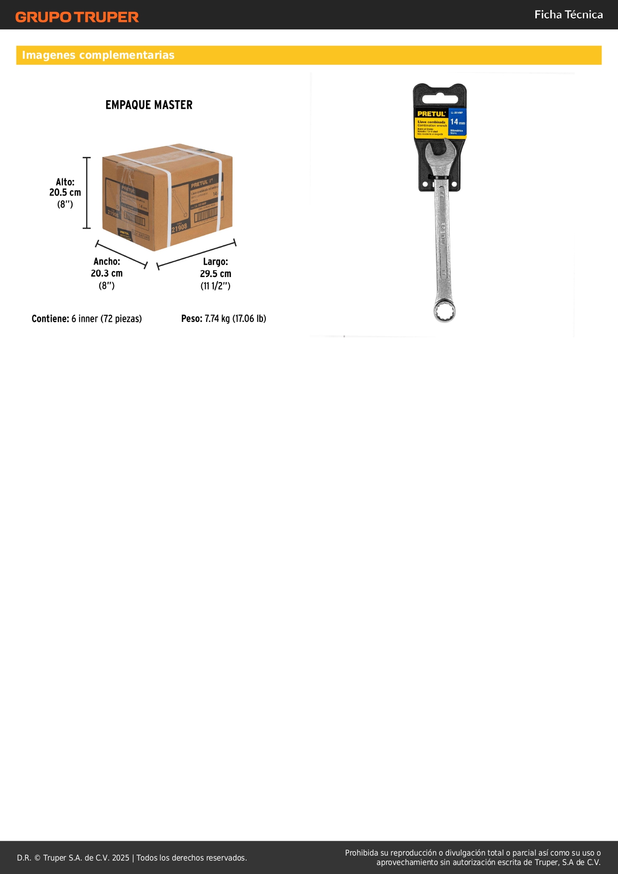 Llave mixta 14 mm x 180 mm de largo. pretul