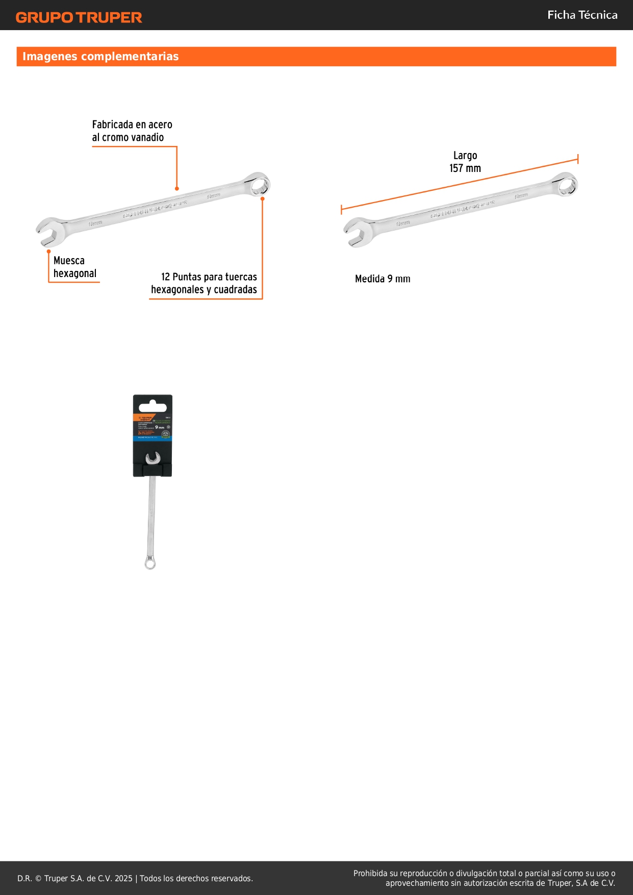 Llave mixta extralarga 9 mm x 157 mm de largo, Expert Truper