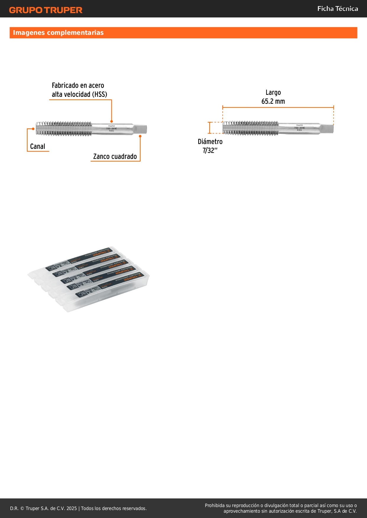 Macho semicónico 7/32´´ x 24 cuerda gruesa, Truper
