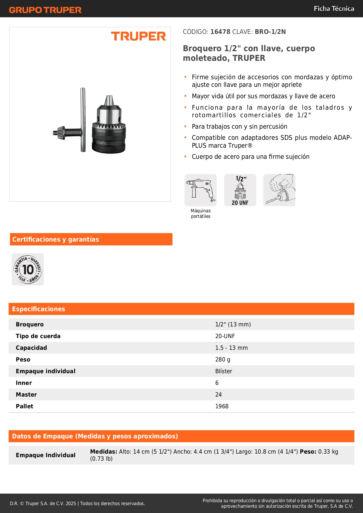 -Compatible con adaptadores SDS plus modelo ADAP-PLUS marca Truper®