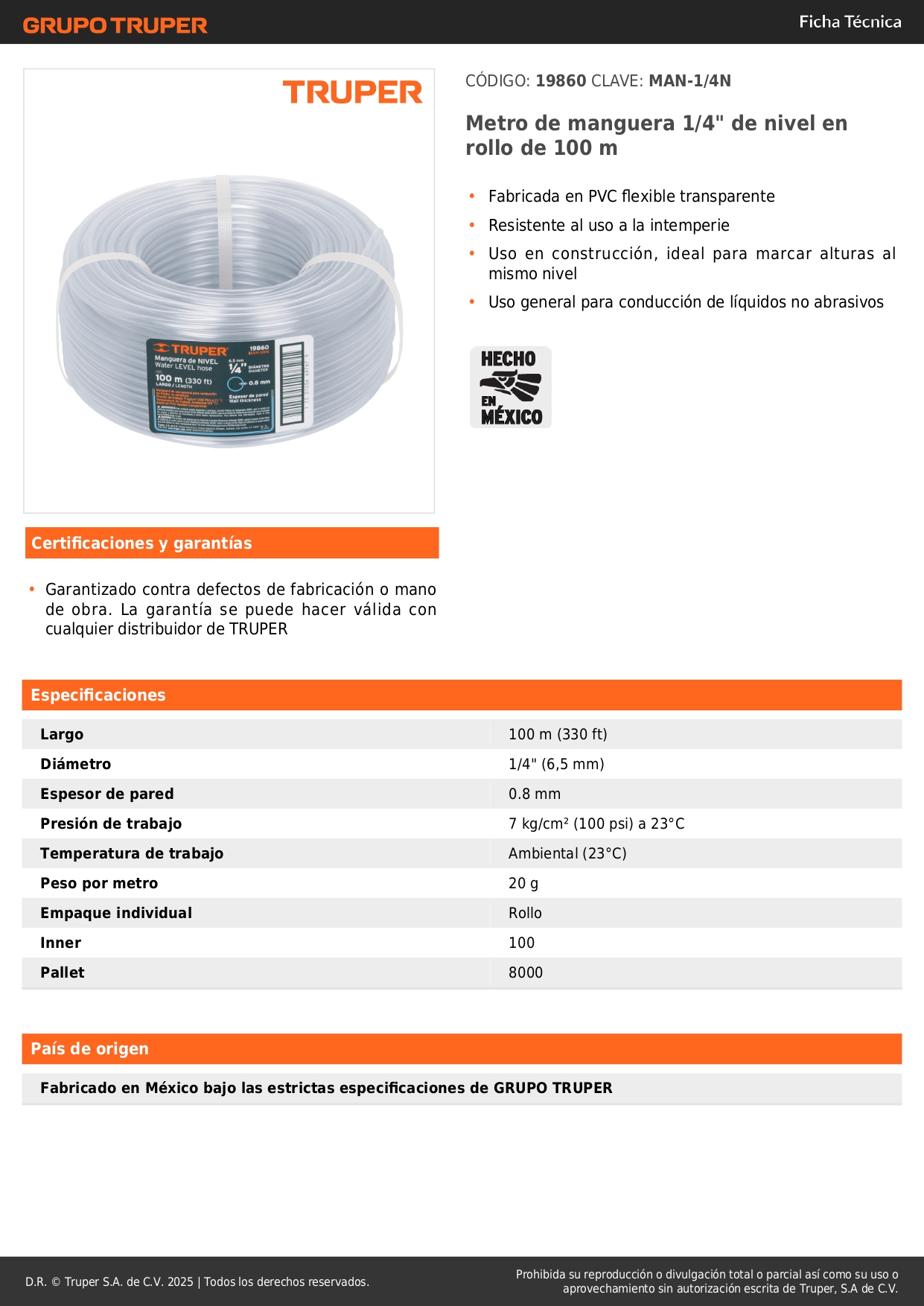 Manguera 1/4'' de nivel en rollo de 100 m Truper