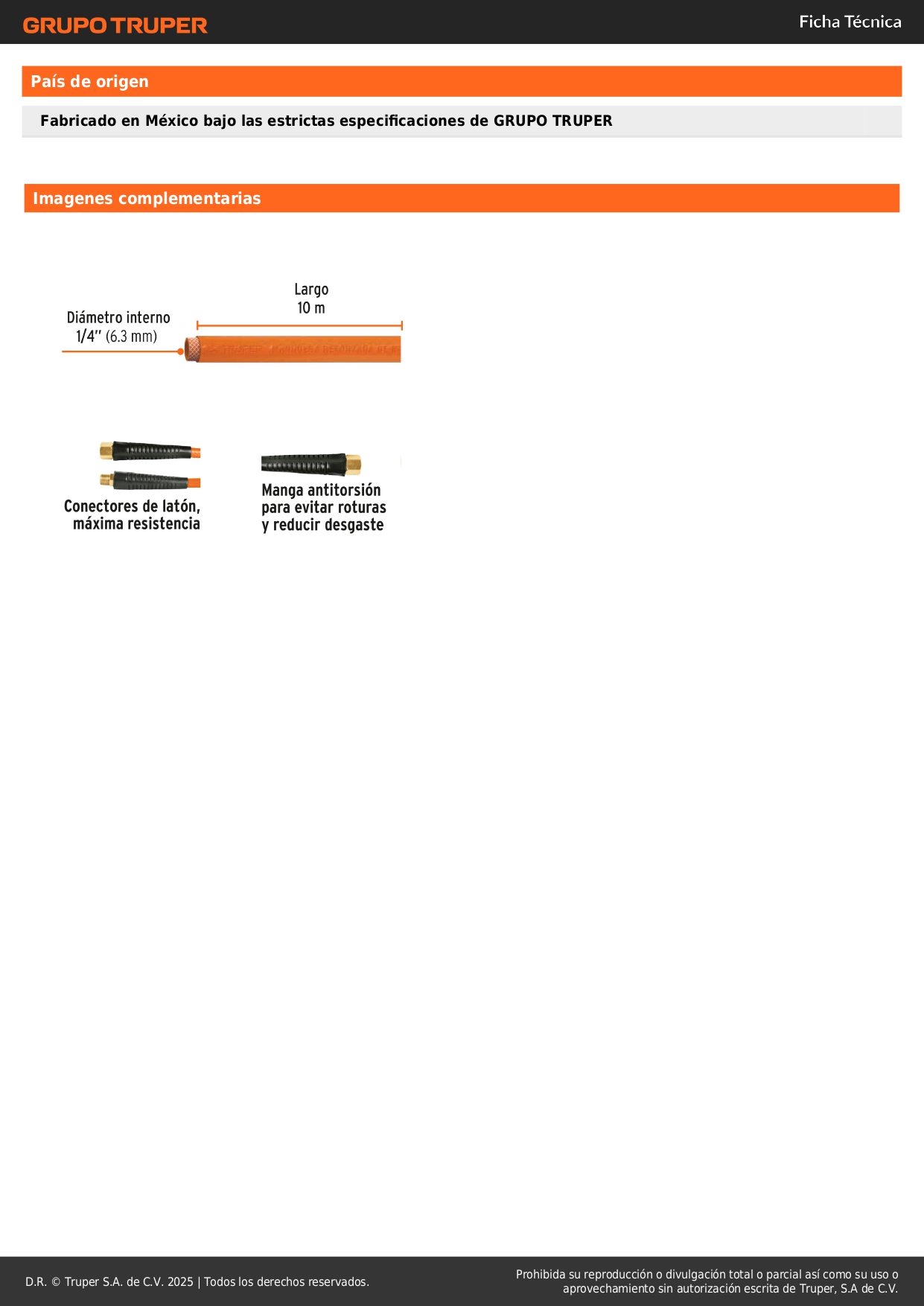 - Manga antitorsión para evitar rupturas y reducir desgaste.