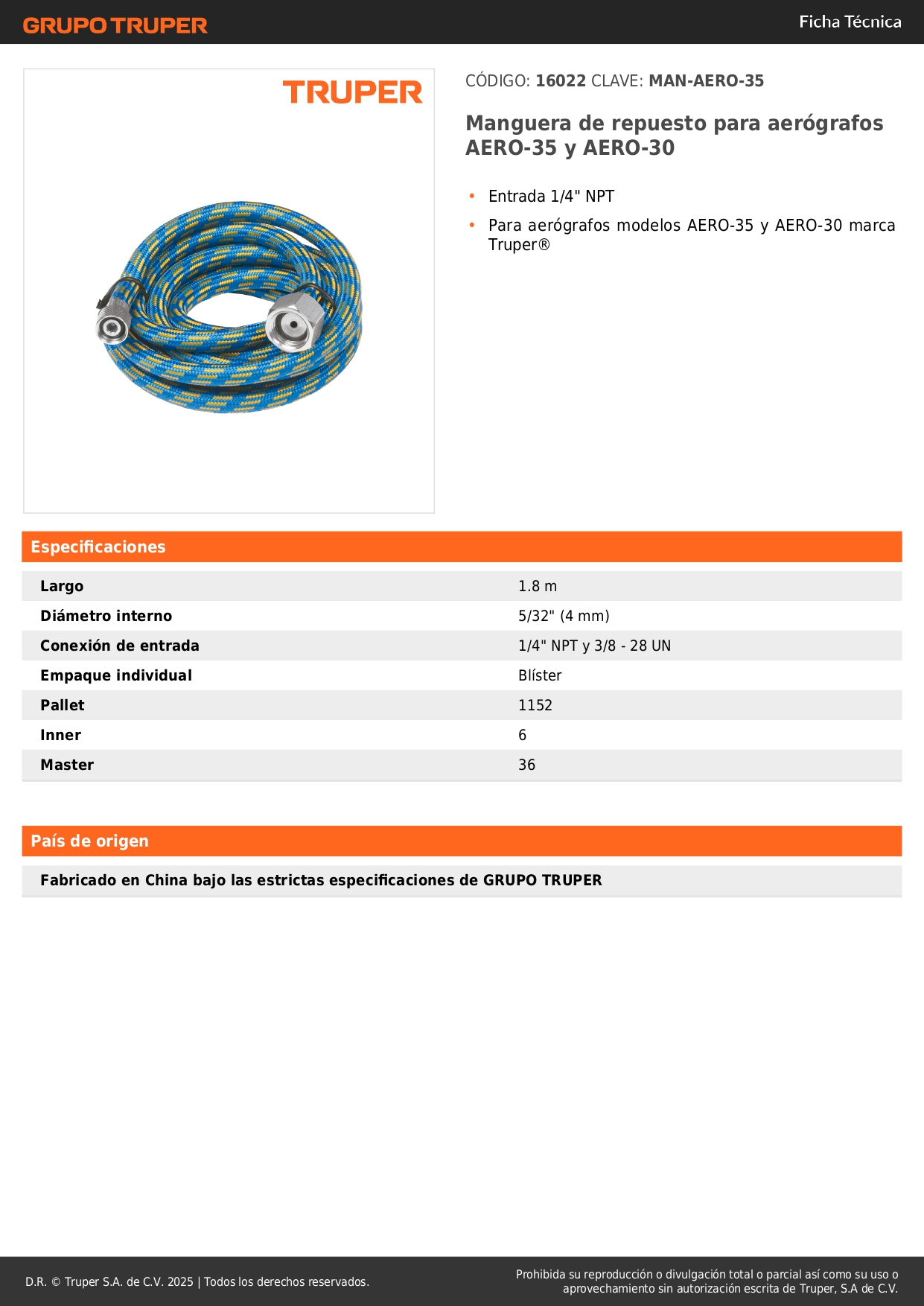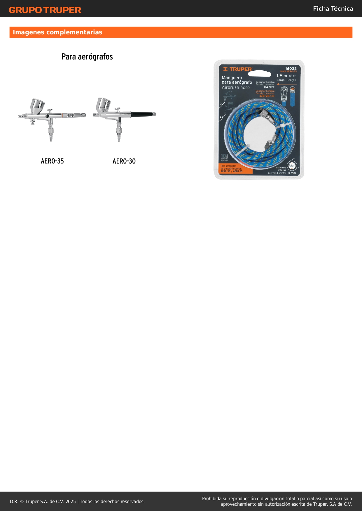 Manguera de repuesto para aerógrafos aero-35 y aero-30 Truper Stock por sucursal Stock por sucursal S/ 16.00 cantidad Agregar al carro Avísame cuando llegue Entrada 1/4" NPT.Manguera para aerógrafo modelos AERO-35 y AERO-30 marca Truper®.