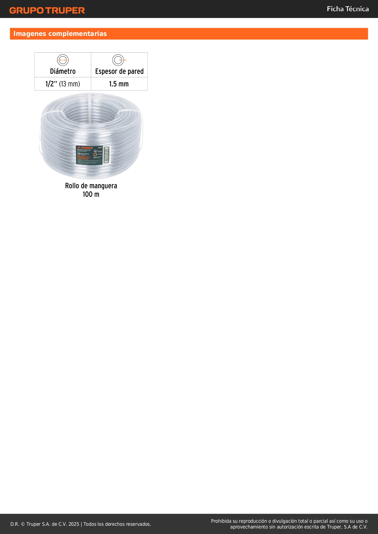Manguera industrial de nivel 1/2 rollo por 100 metros