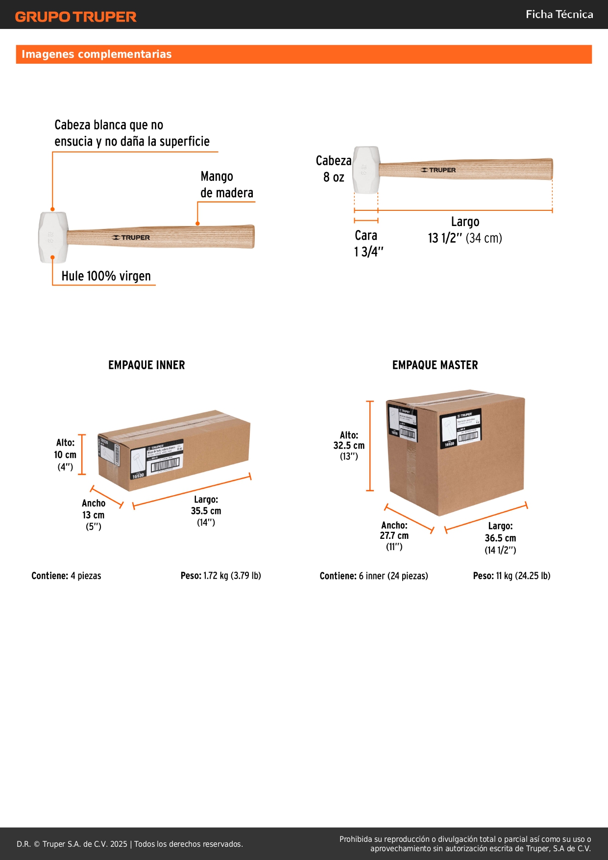Martillo de goma 8" oz Truper
