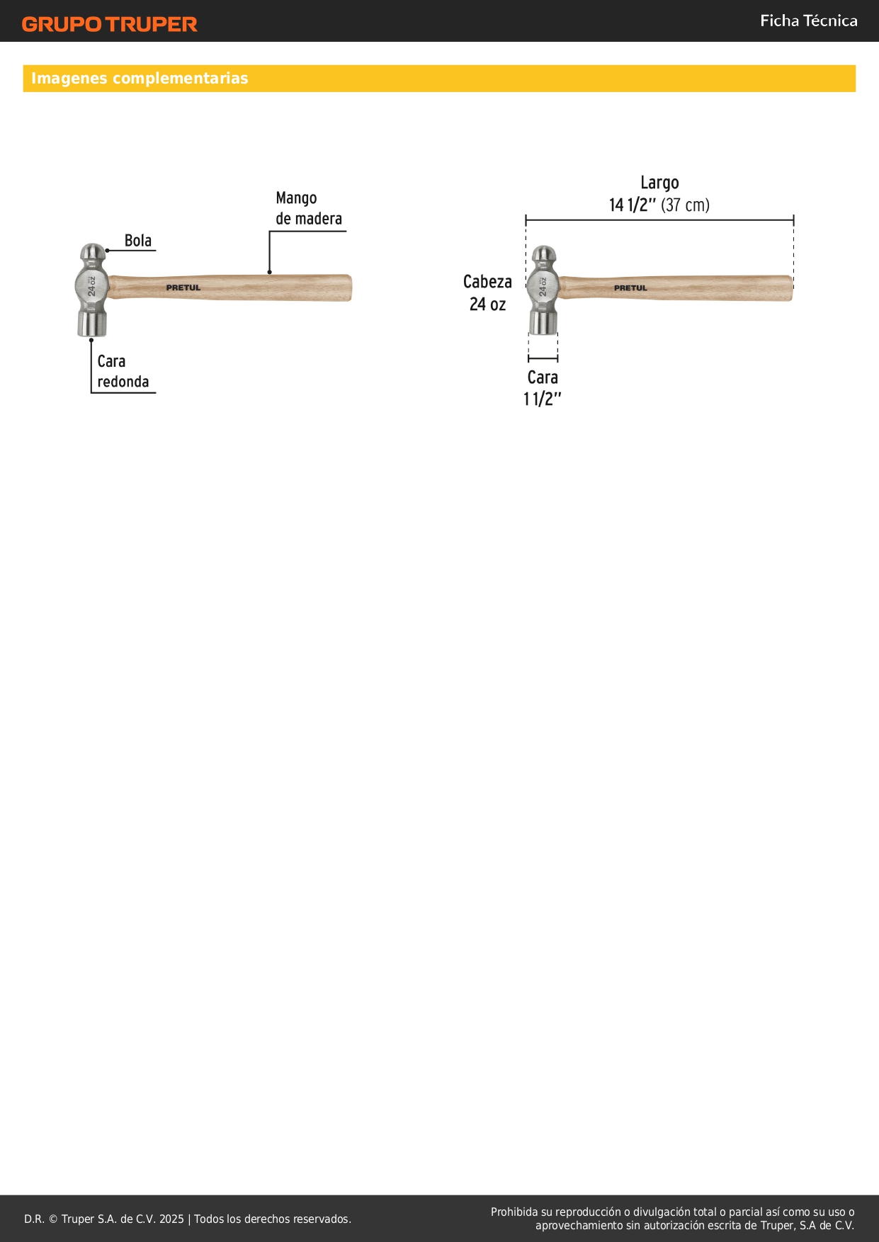 Martillo pulido de bola 24 oz mango madera, Pretul Stock por sucursal Stock por sucursal S/ 24.00 cantidad Agregar al carro Avísame cuando llegue -Cabeza de acero al medio carbono con cara redonda-Mango de madera pulido y laqueado