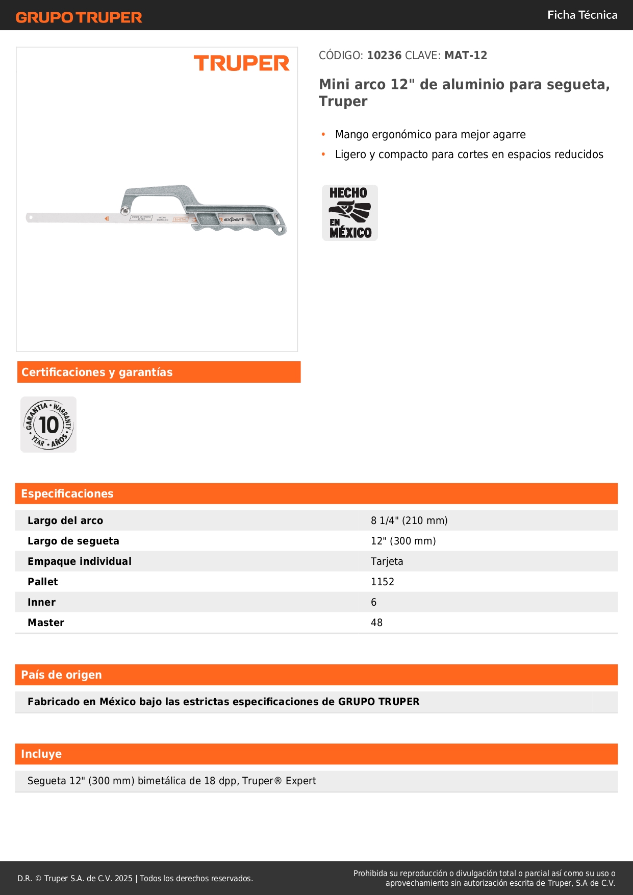 Mini arco de aluminio para sierra 12" Truper 10236