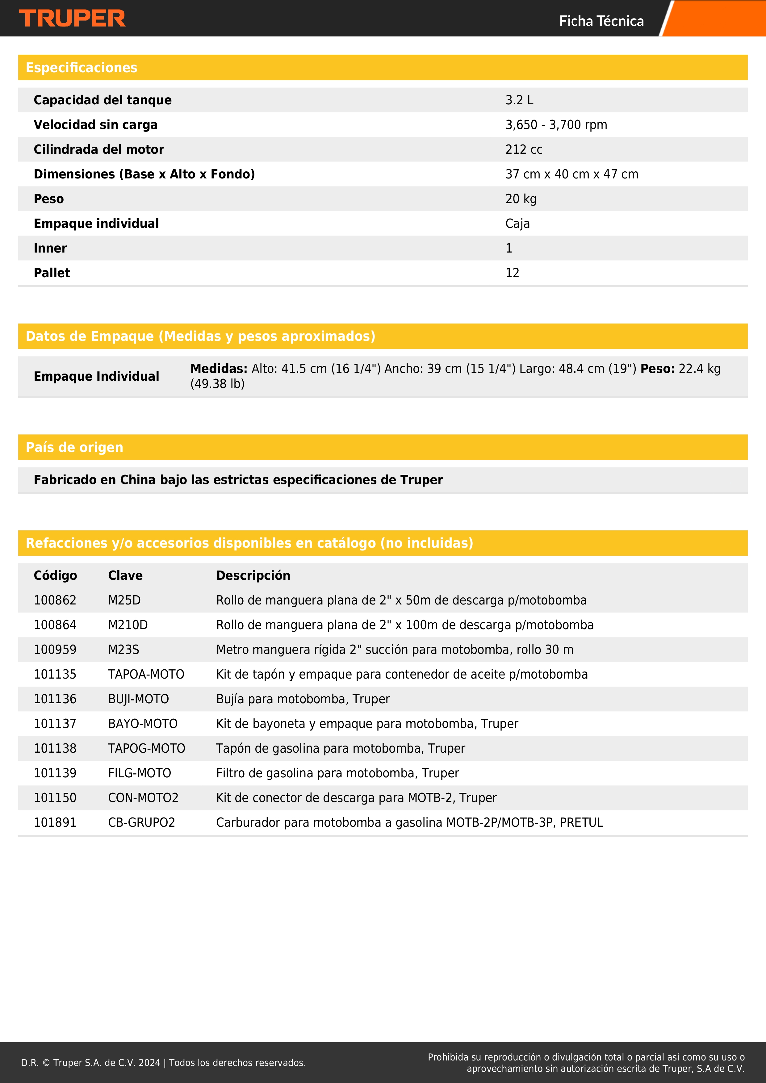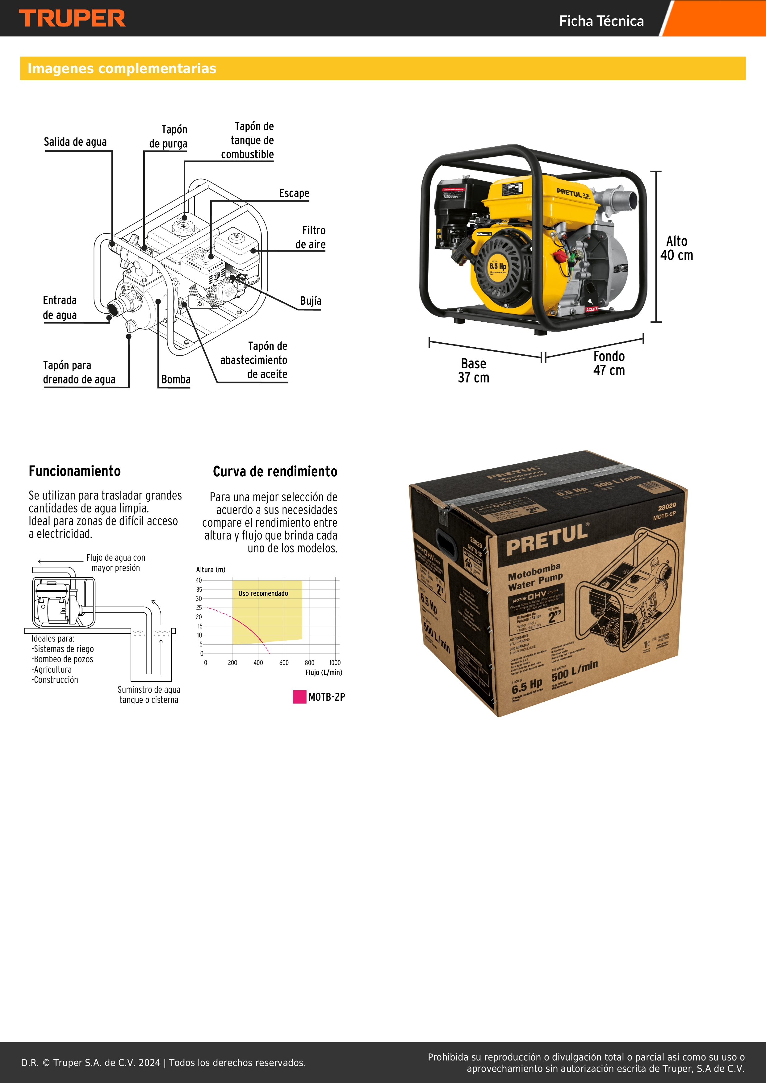 - Altura máxima de bombeo: 25 m.