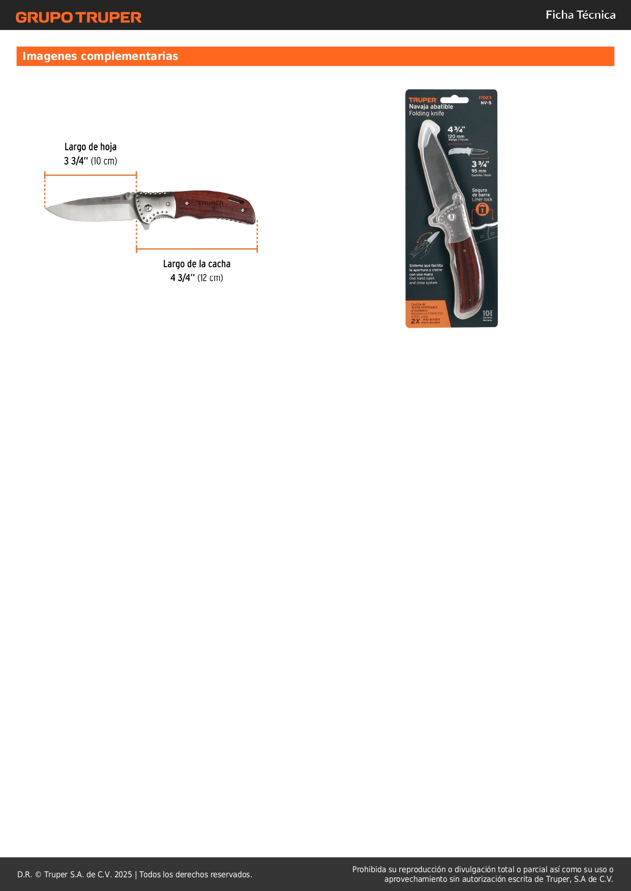 Navaja abatible 4-3/4´´ mango de madera, Truper