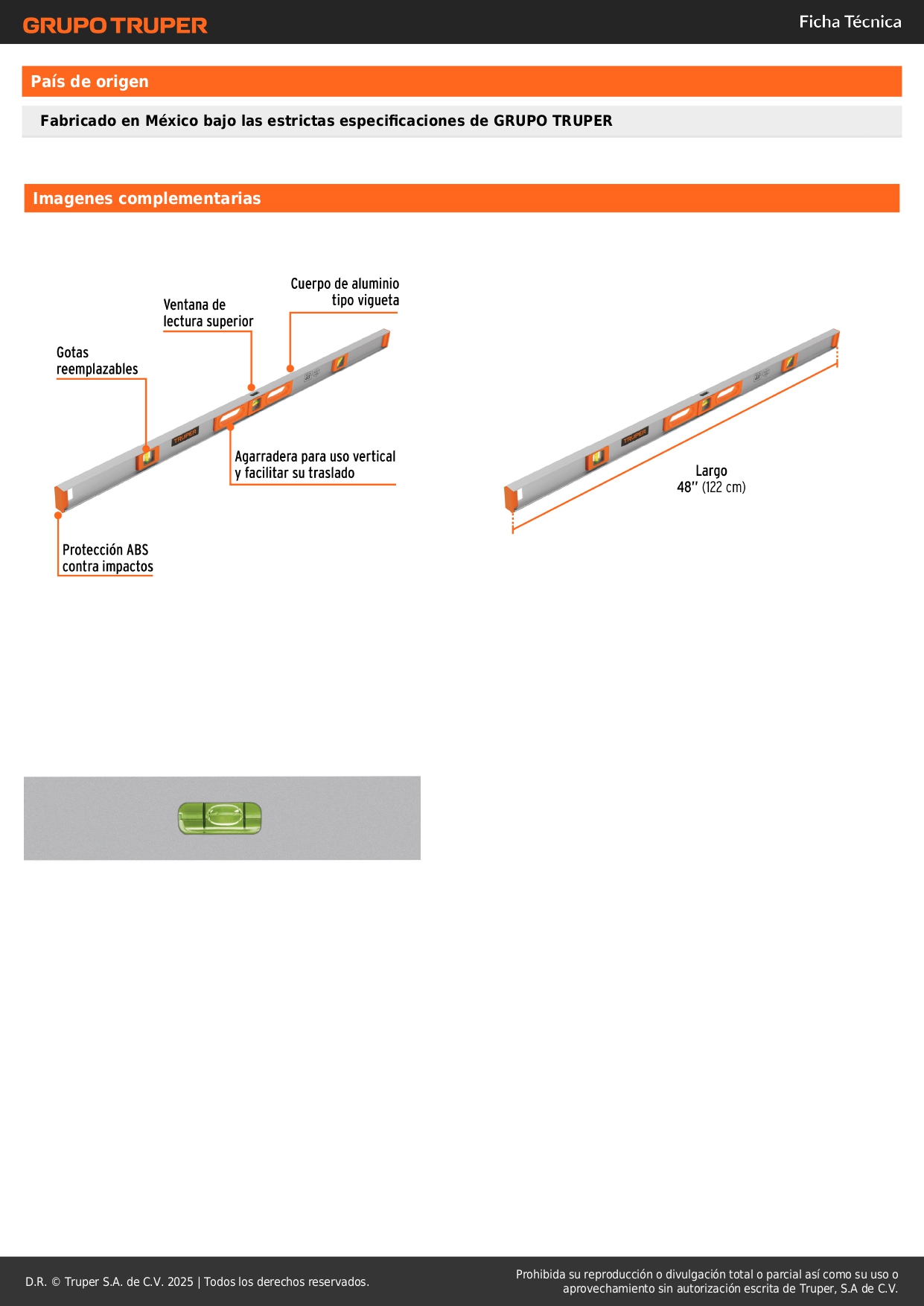 Nivel profesional de 48" con protección de ABS, Truper