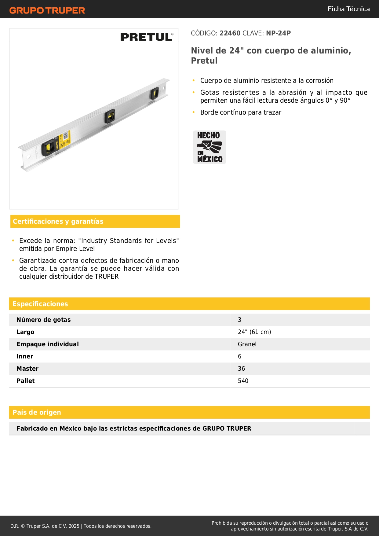 Nivel de Aluminio 24 Pretul
