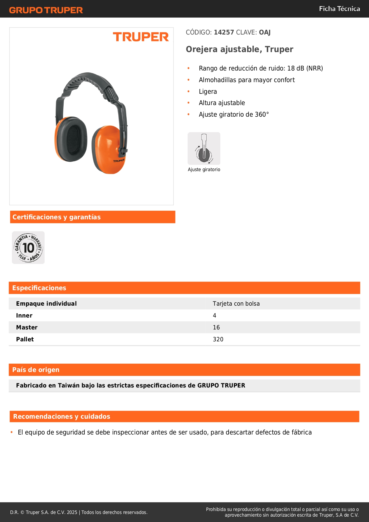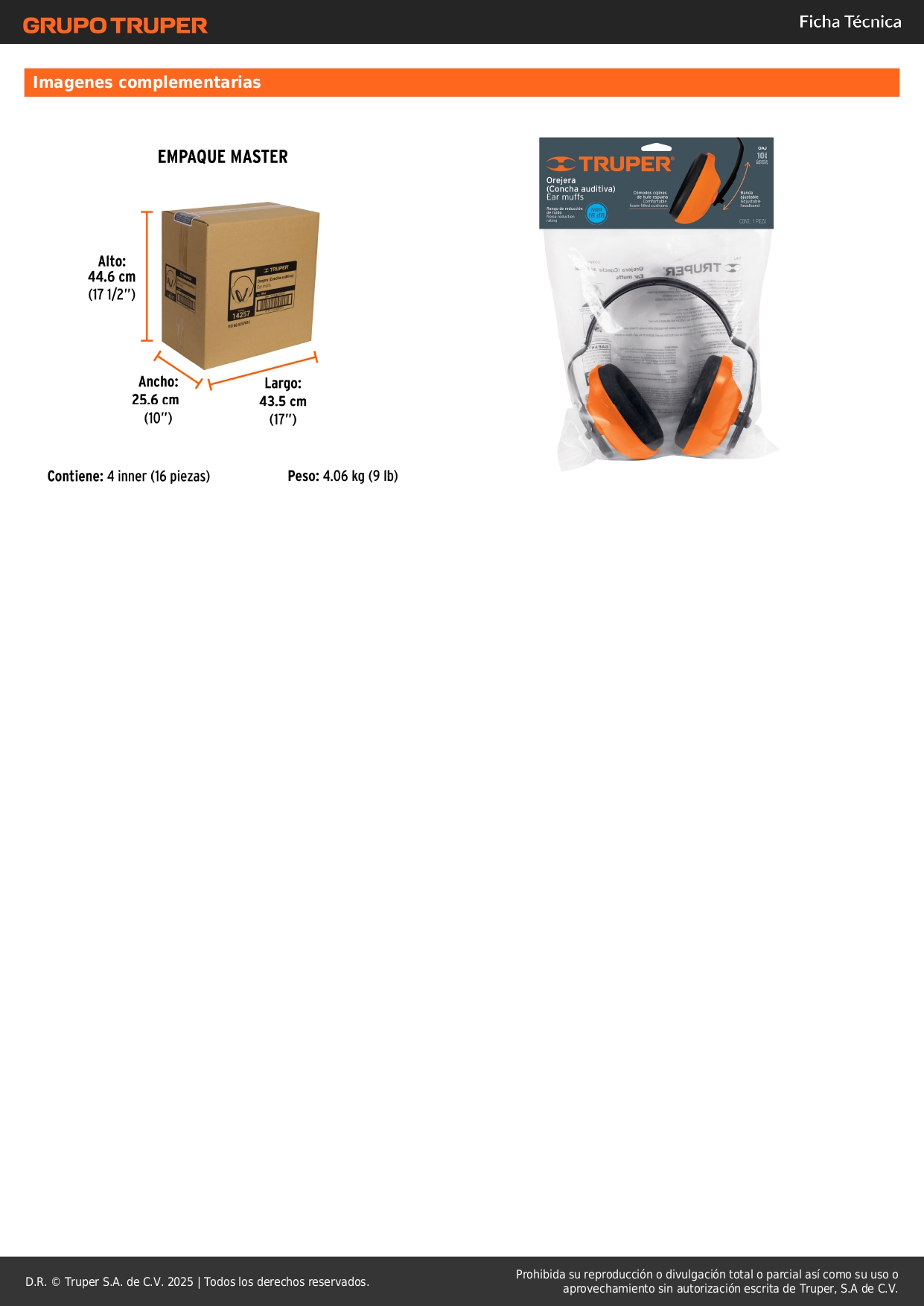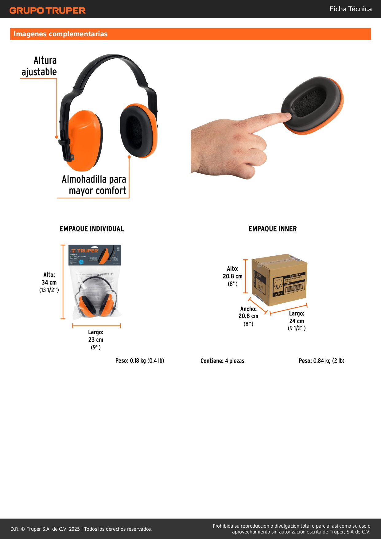 • Nivel de reducción de ruido: 18 dB (NRR)