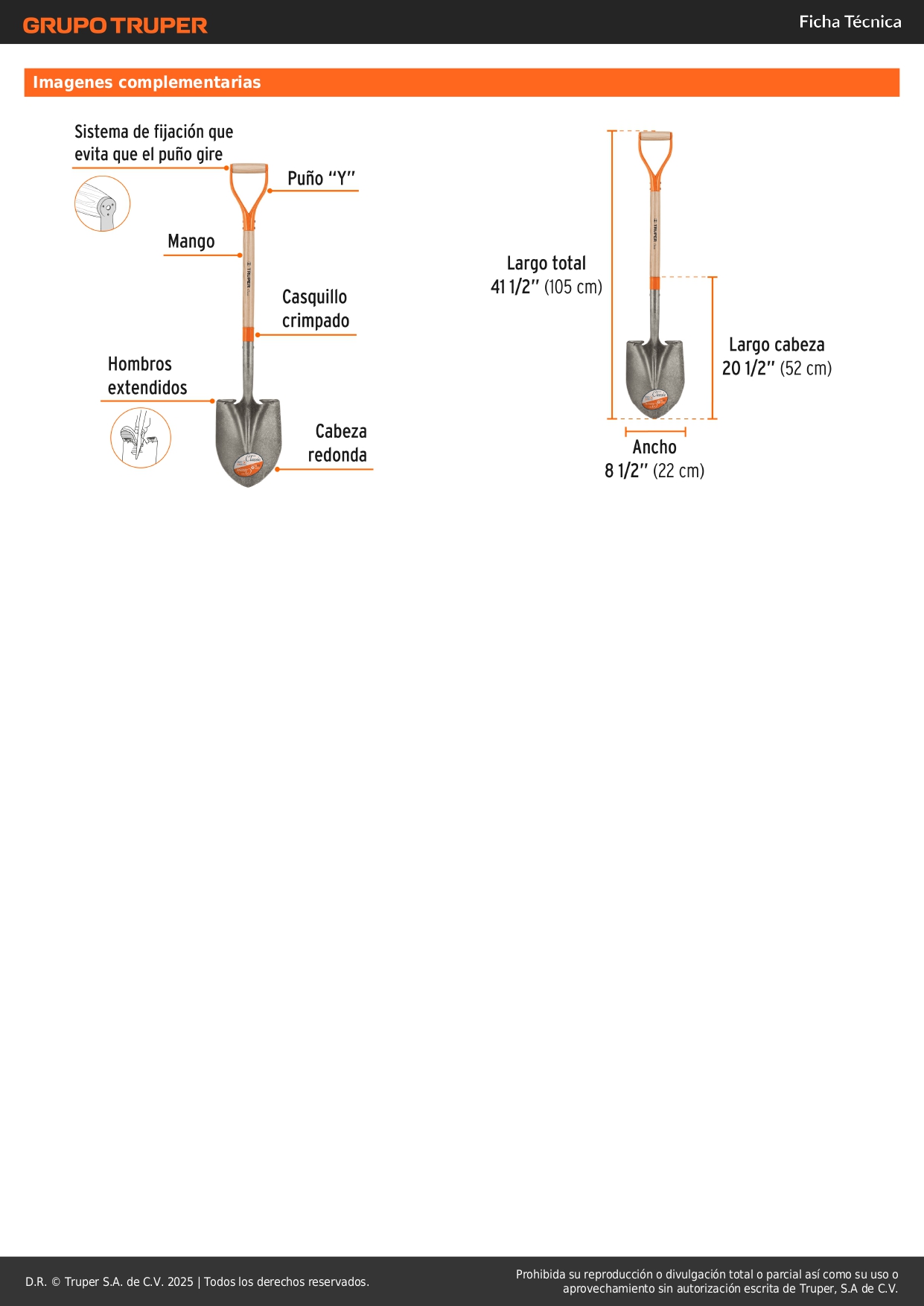 Ancho de la cabeza (A) 8 1/2" (22 cm)