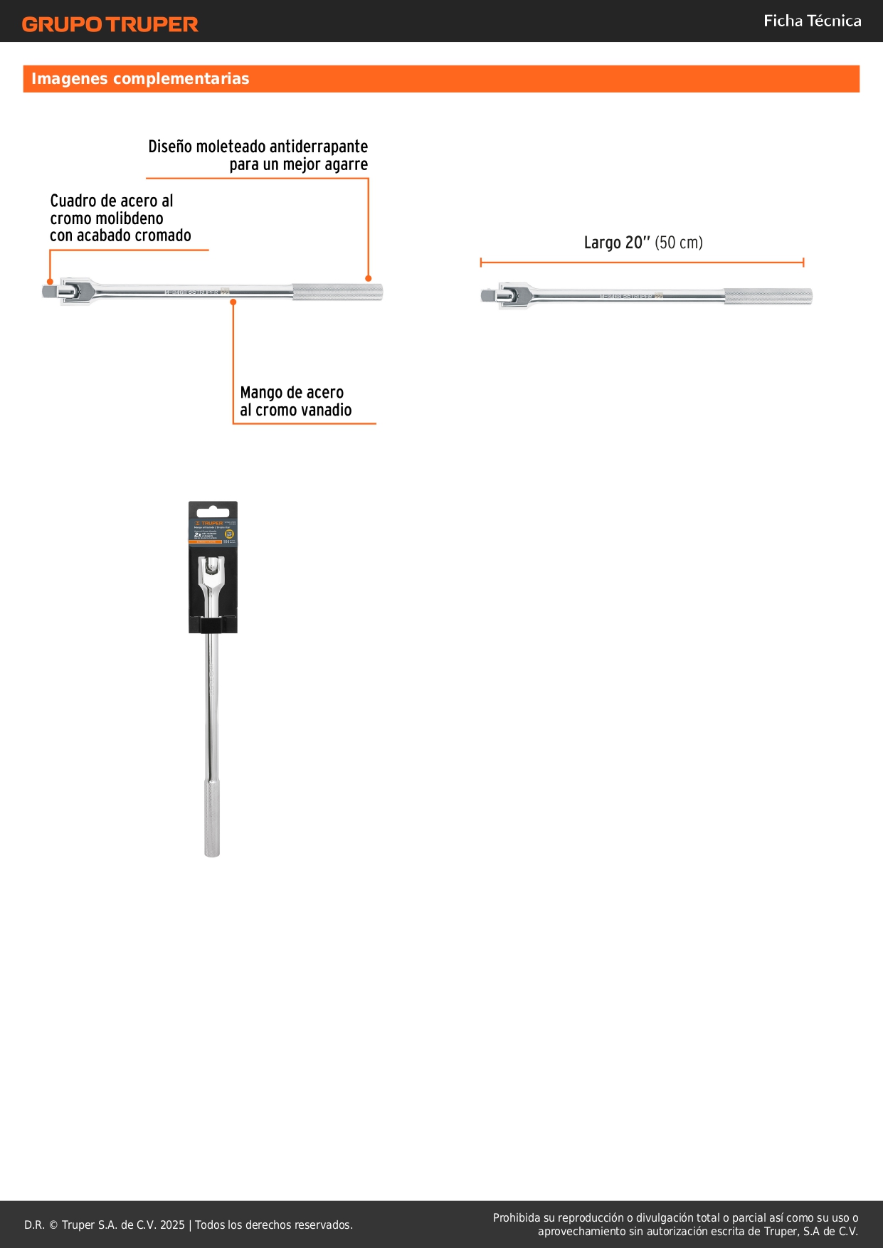 Palanca articulada de 20´´ encastre 3/4´´, Truper