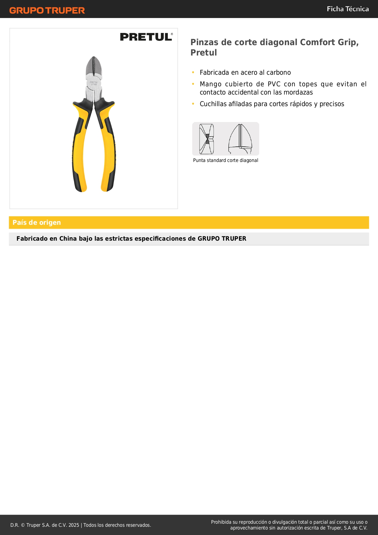 PCD-8PX Pinza de corte diagonal 8' mango Comfort Grip, Pretul