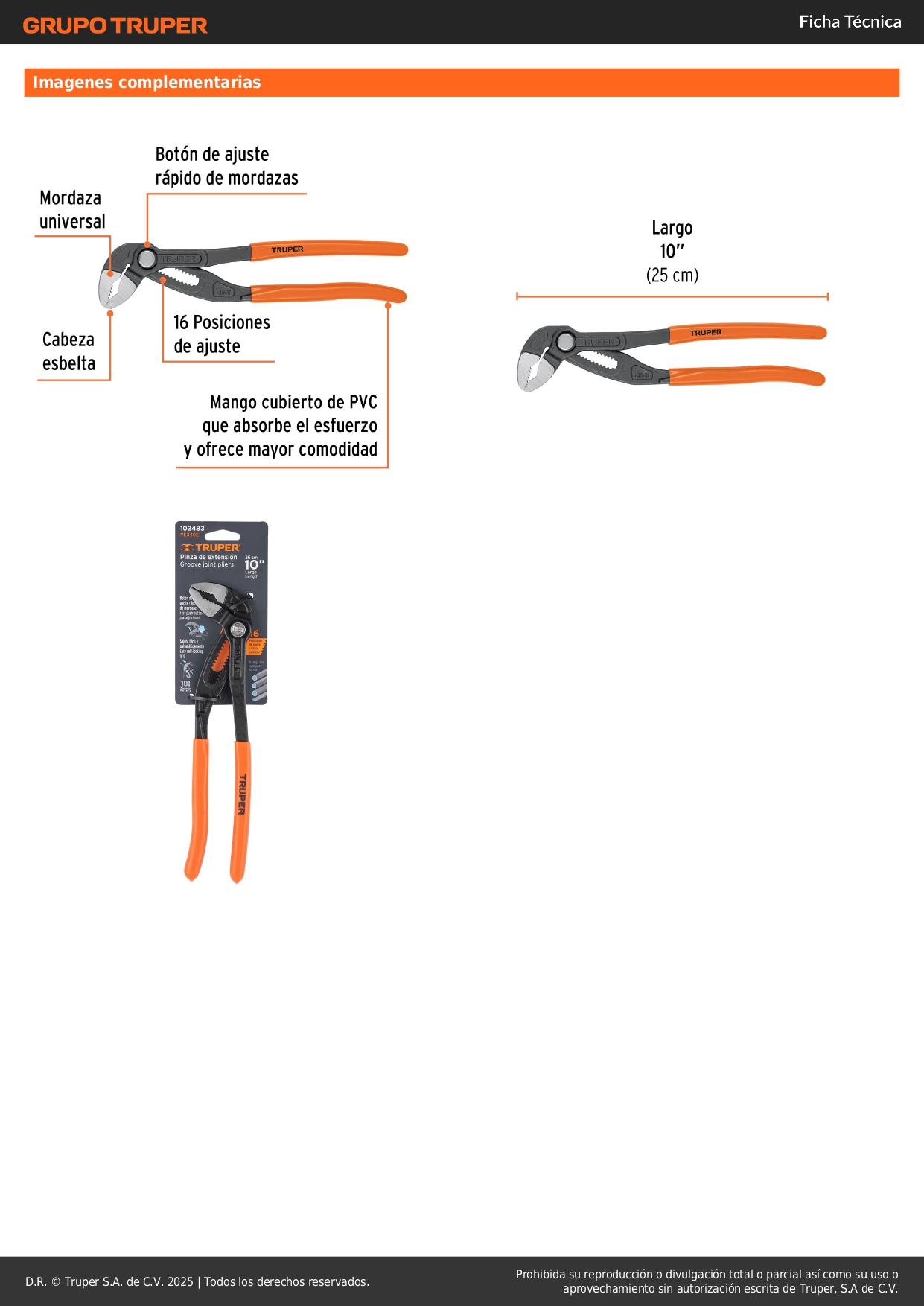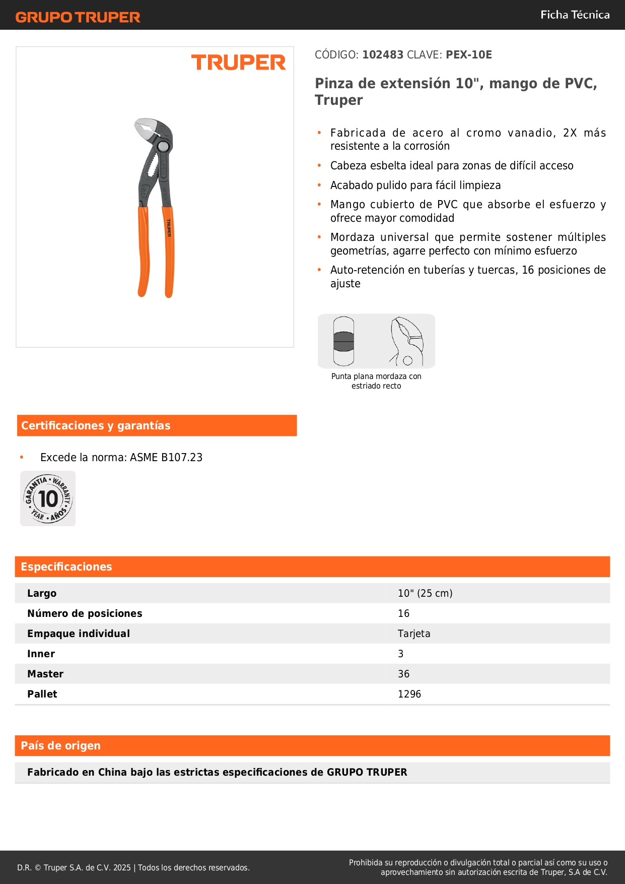 PEX-10E Pinza de extensión 10', mango de PVC, Truper