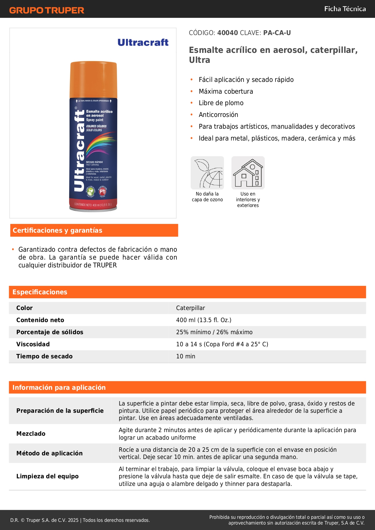 Esmalte acrílico en aerosol, caterpillar, Ultra