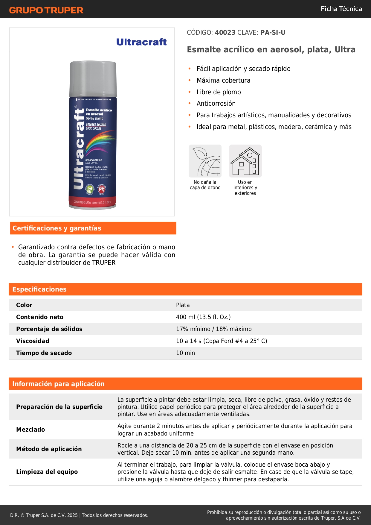 • No daña la capa de ozono y es libre de plomo