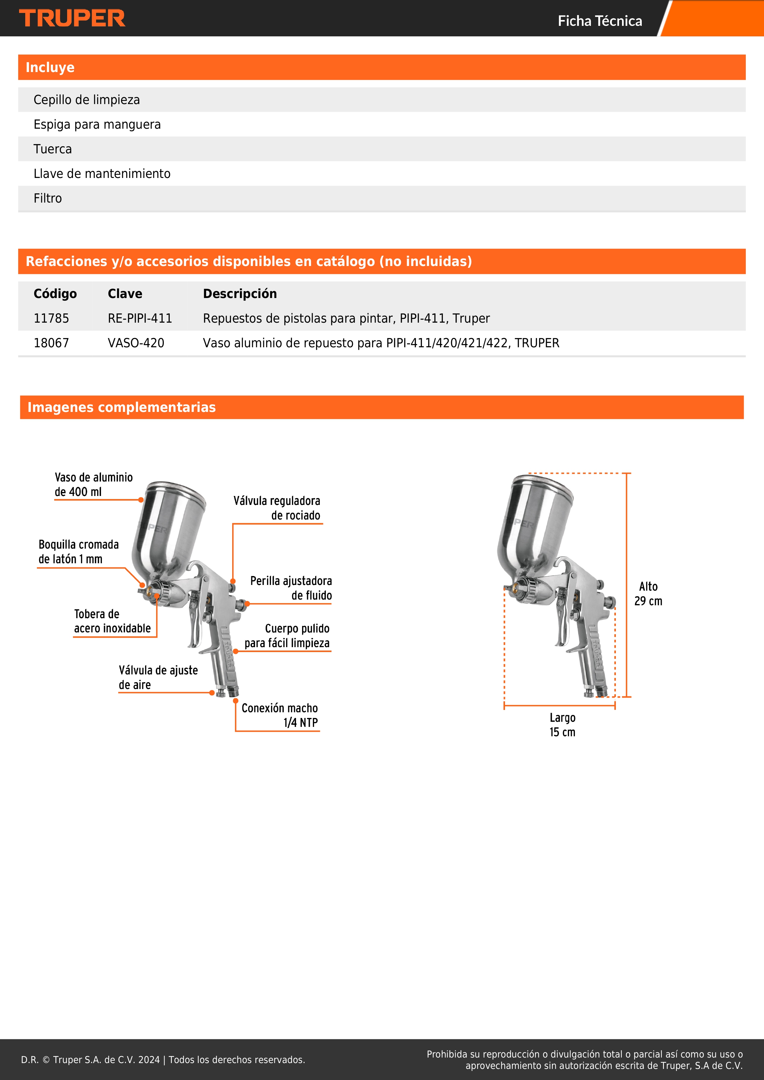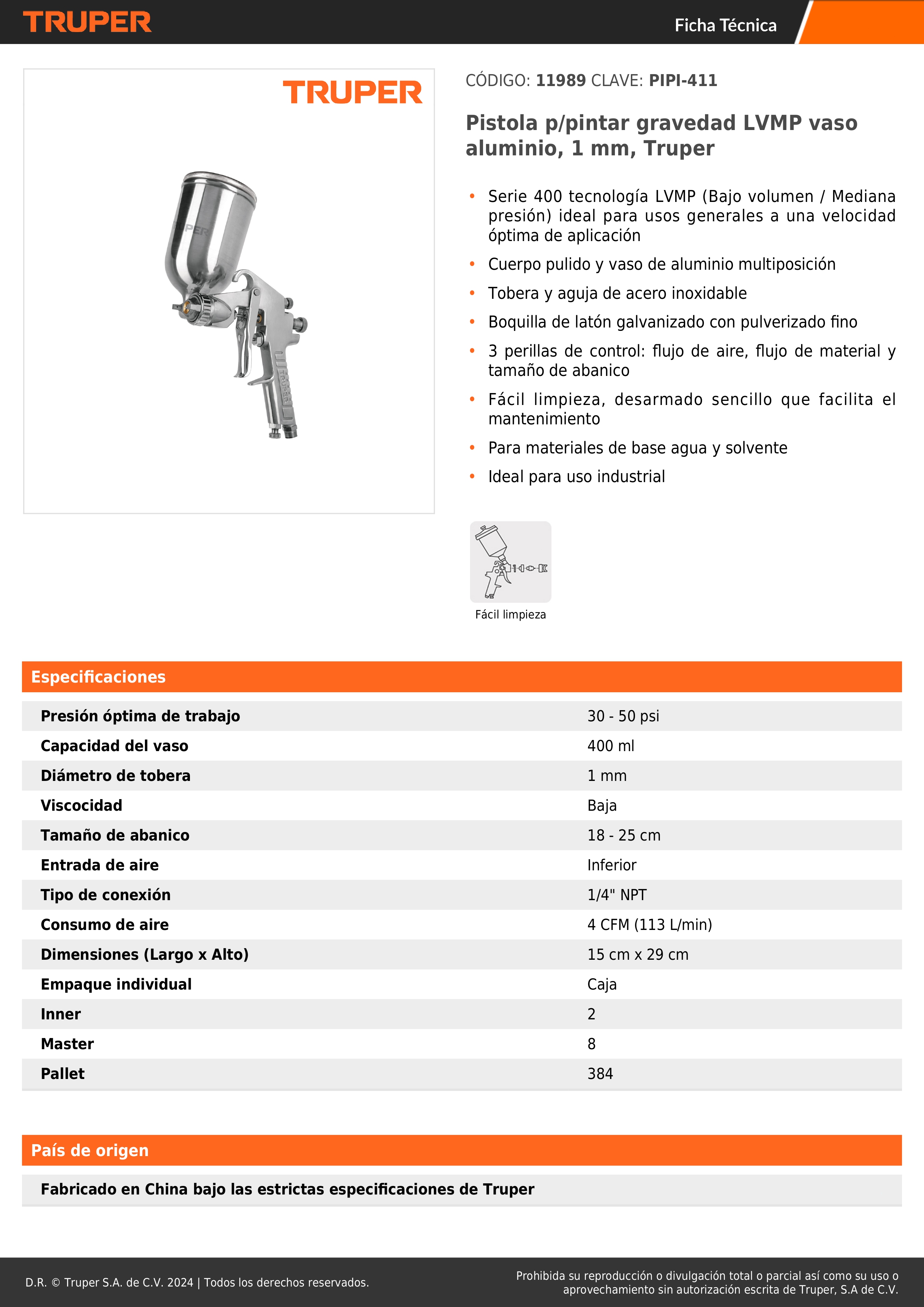 - Serie 400 tecnología LVMP (Bajo volumen / Media presión) ideal para usos generales a una velocidad óptima de aplicación