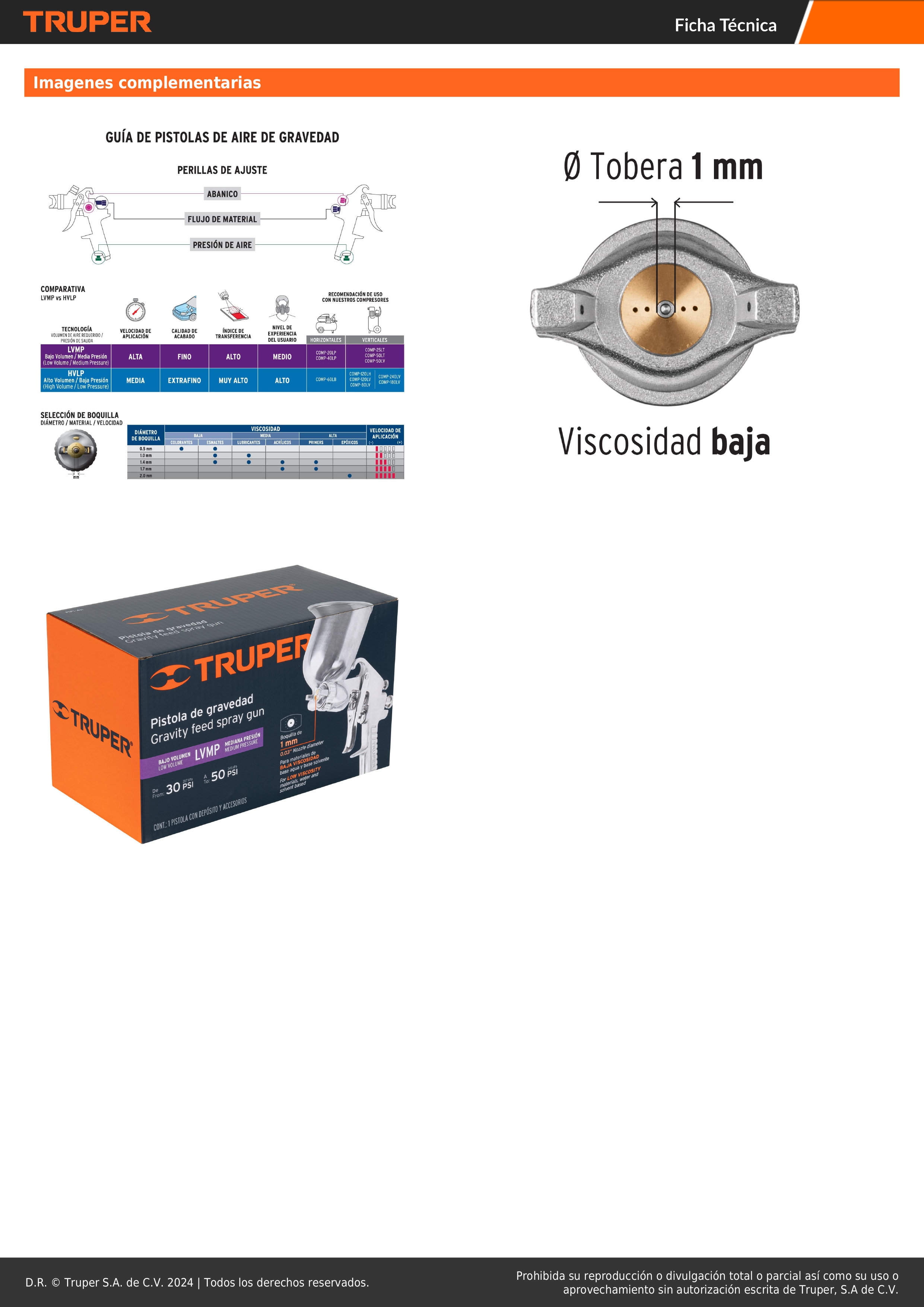 Pistola para pintar de gravedad LVMP Vaso aluminio Boquilla 1.0 mm Truper