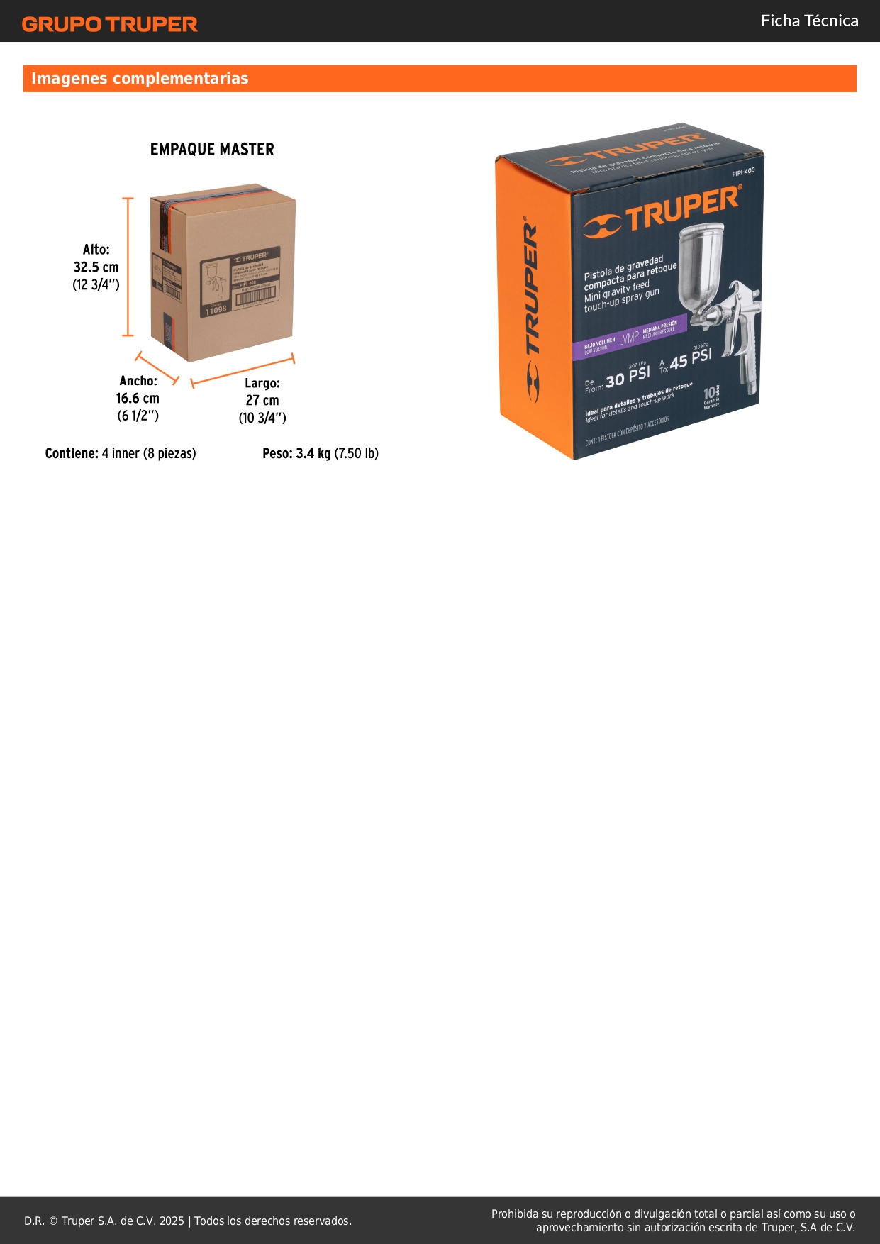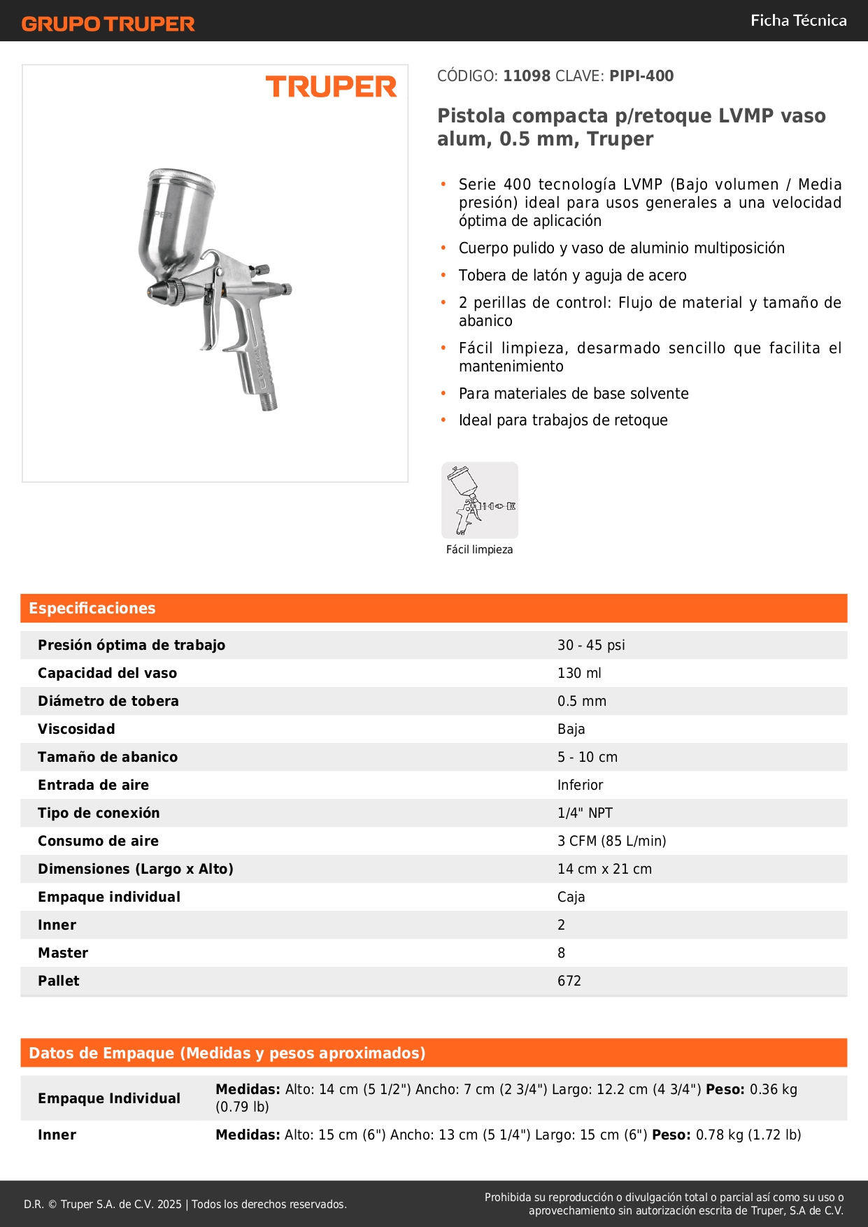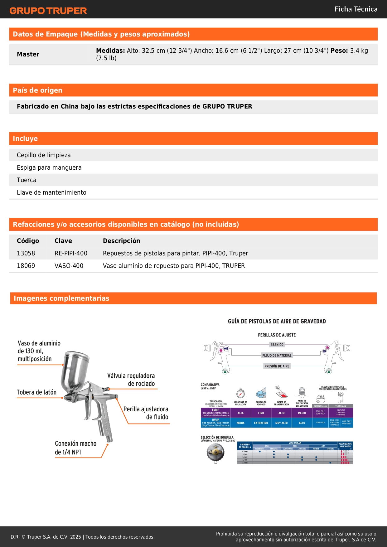 - Serie 400 tecnología LVMP (Bajo volumen / Media presión) ideal para usos generales a una velocidad óptima de aplicación.