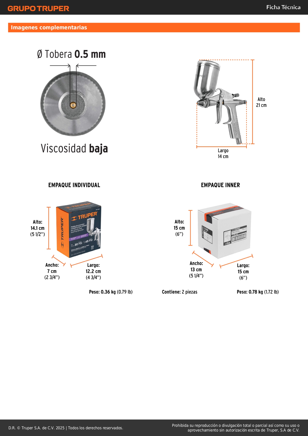 - 2 perillas de control: Flujo de material y tamaño de abanico.