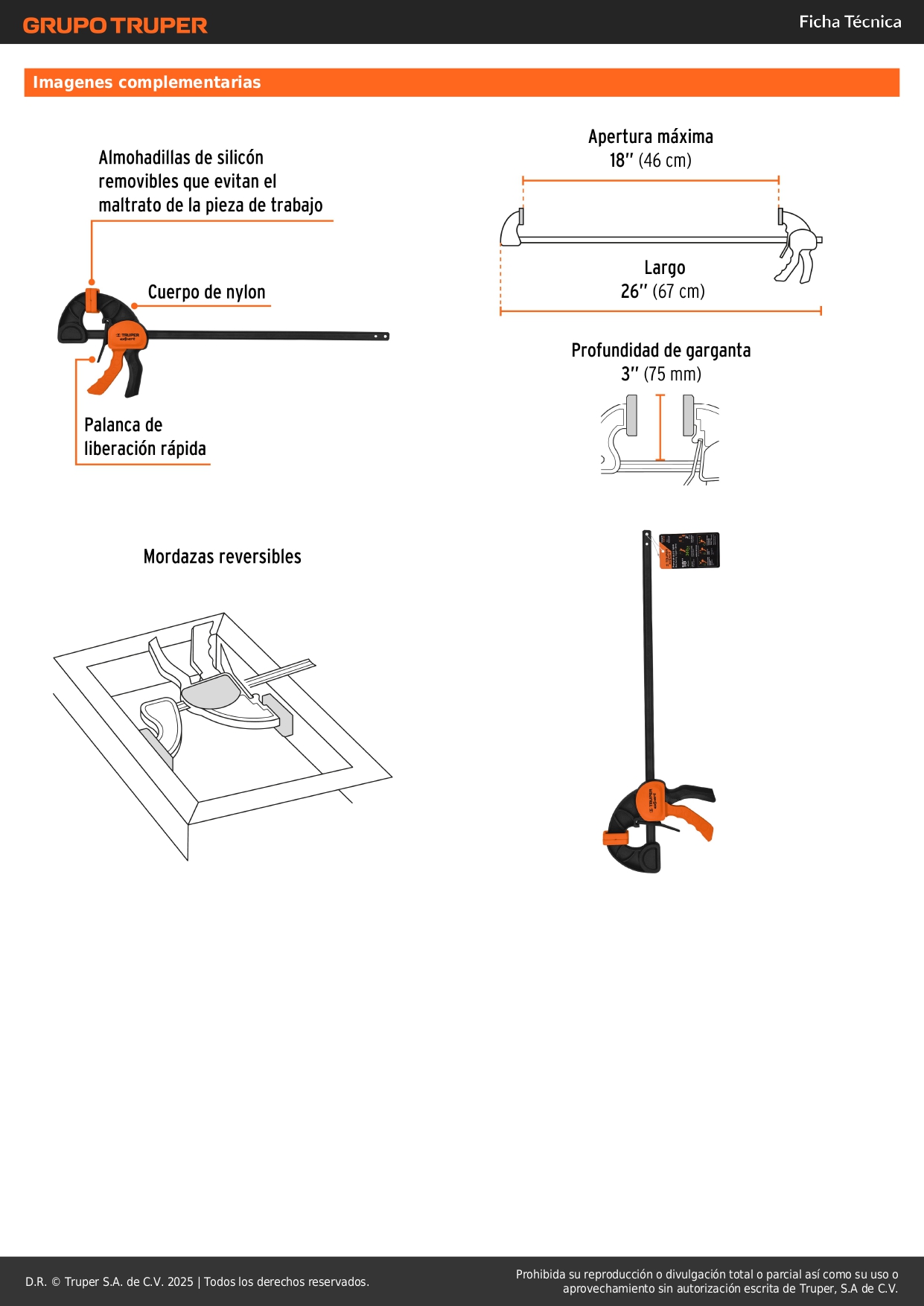 Prensa rapida auto ajustable 18¨ uso rudo Truper