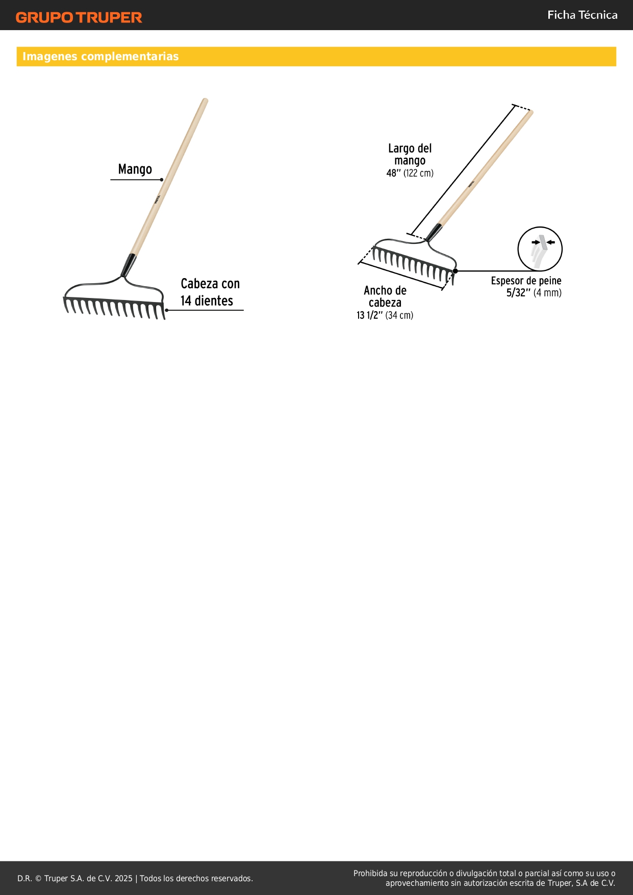 - Diámetro del mango: 1 1/8" (28 mm).