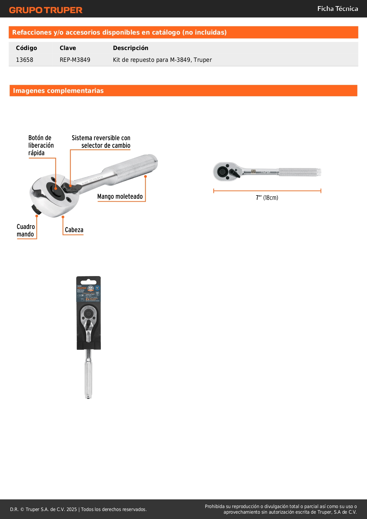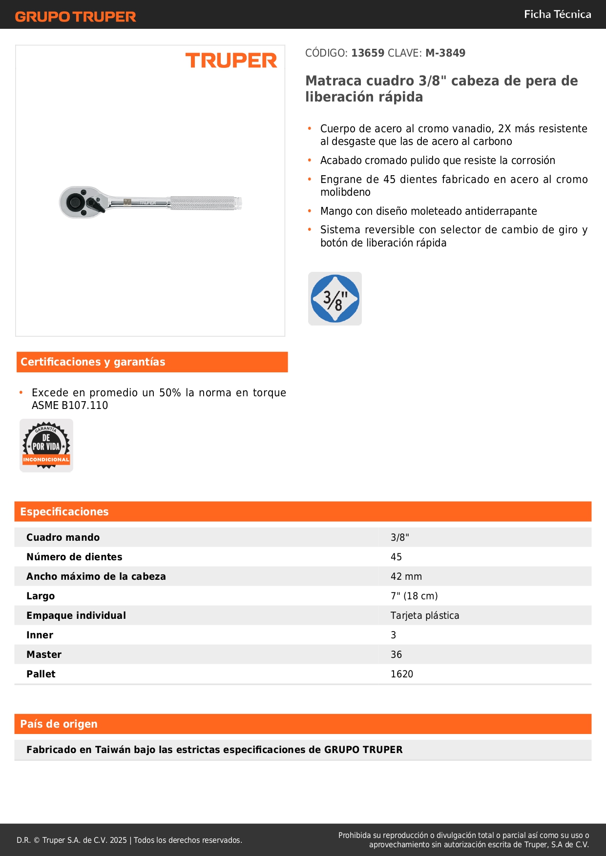 Ratchet encastre 3/8'' cabeza de pera de liberación rápida Truper